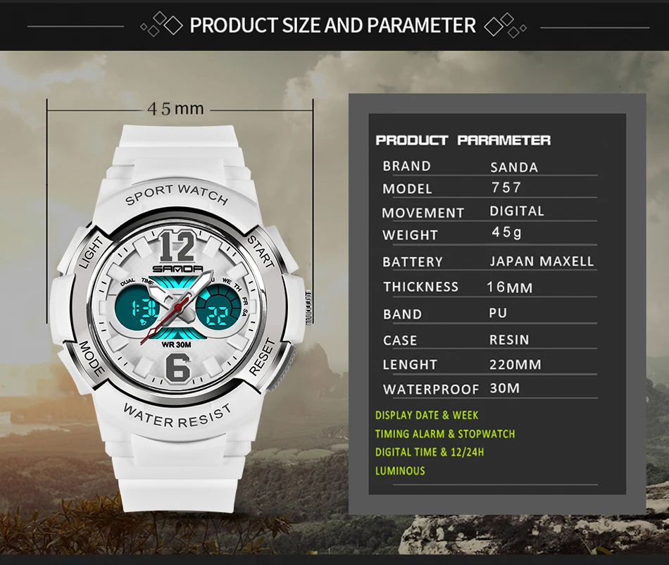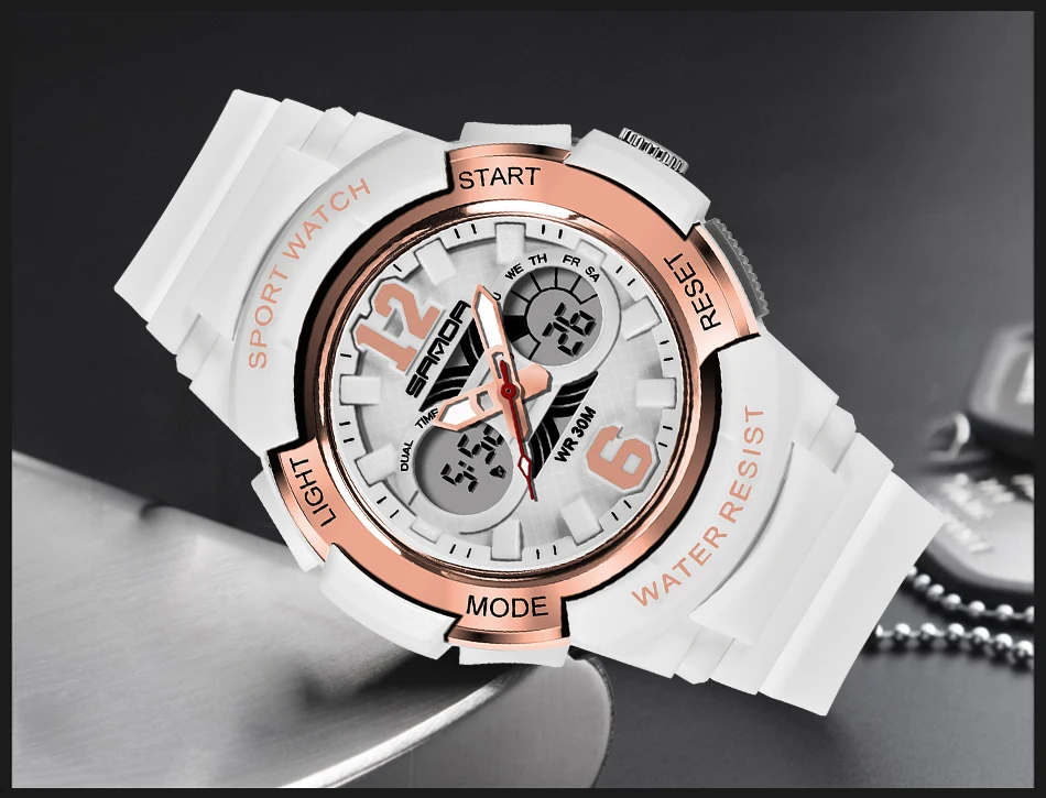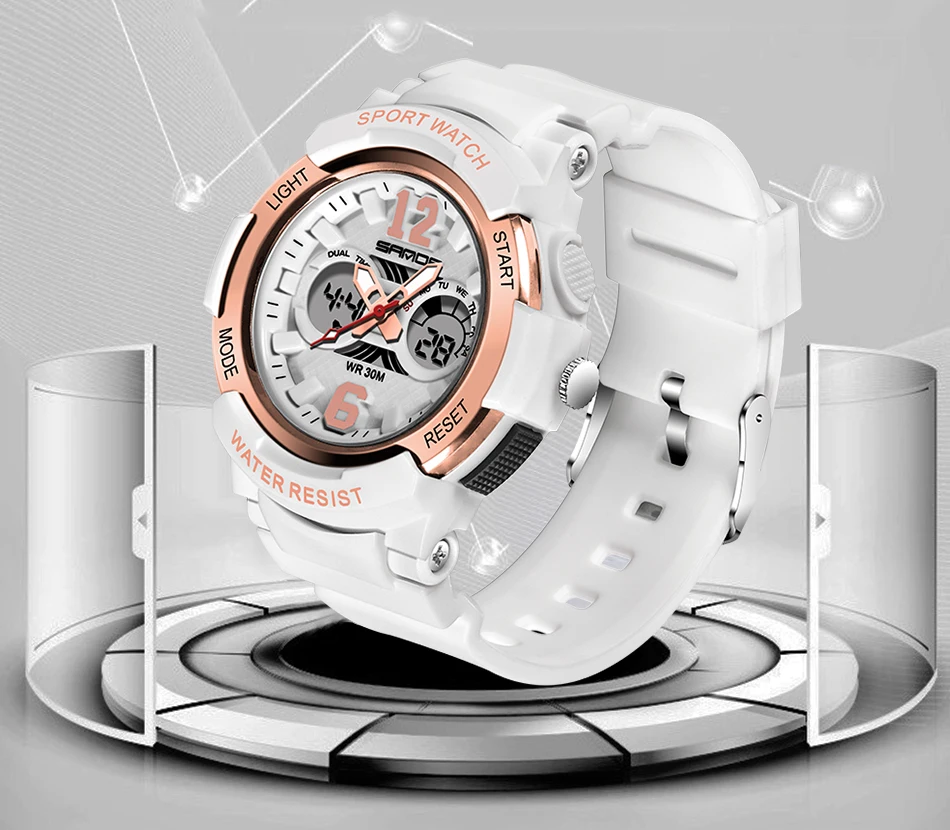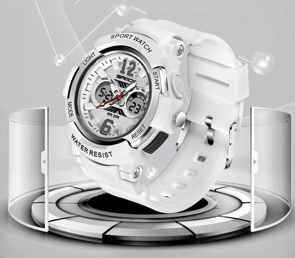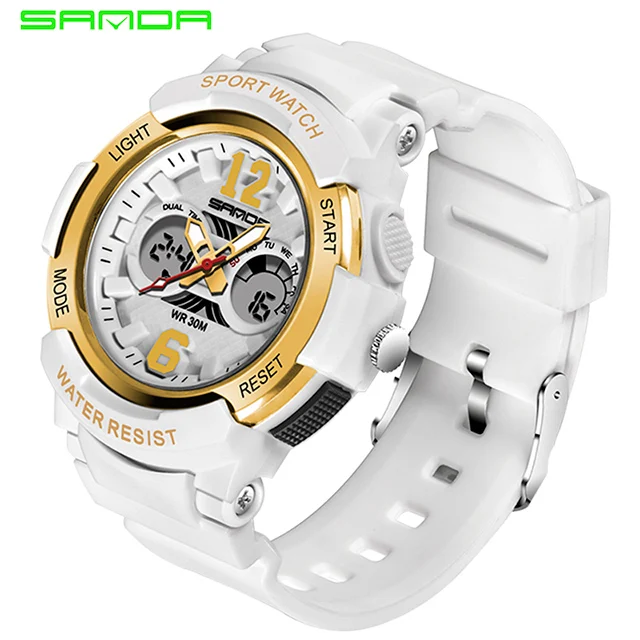 Часы наручные Sanda женские кварцевые, брендовые Белые Водонепроницаемые спортивные, для плавания, 2021
