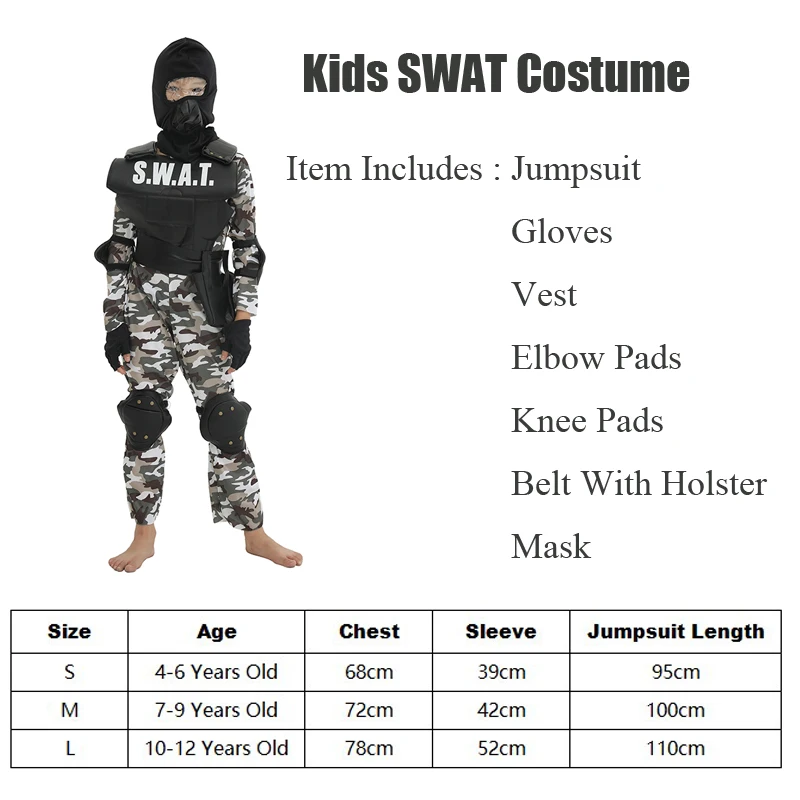 Snailify Детский костюм спецназовца для мальчиков S.W.A.T. Костюм для Хэллоуина 2021 детский Пурим Карнавал косплей