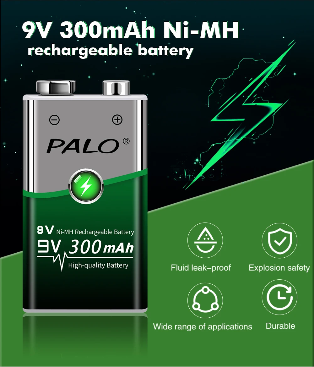 Перезаряжаемый никель-металл-гидридный аккумулятор PALO, 9 В, 300 мАч