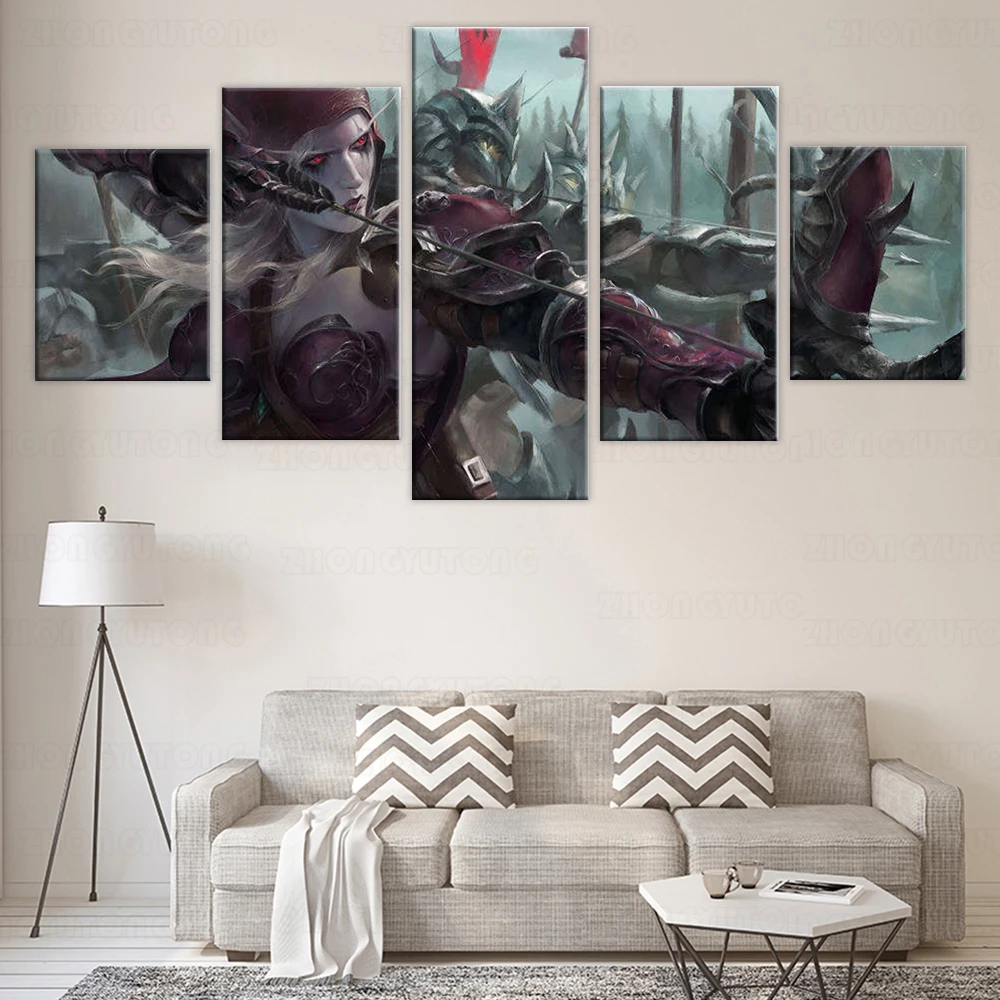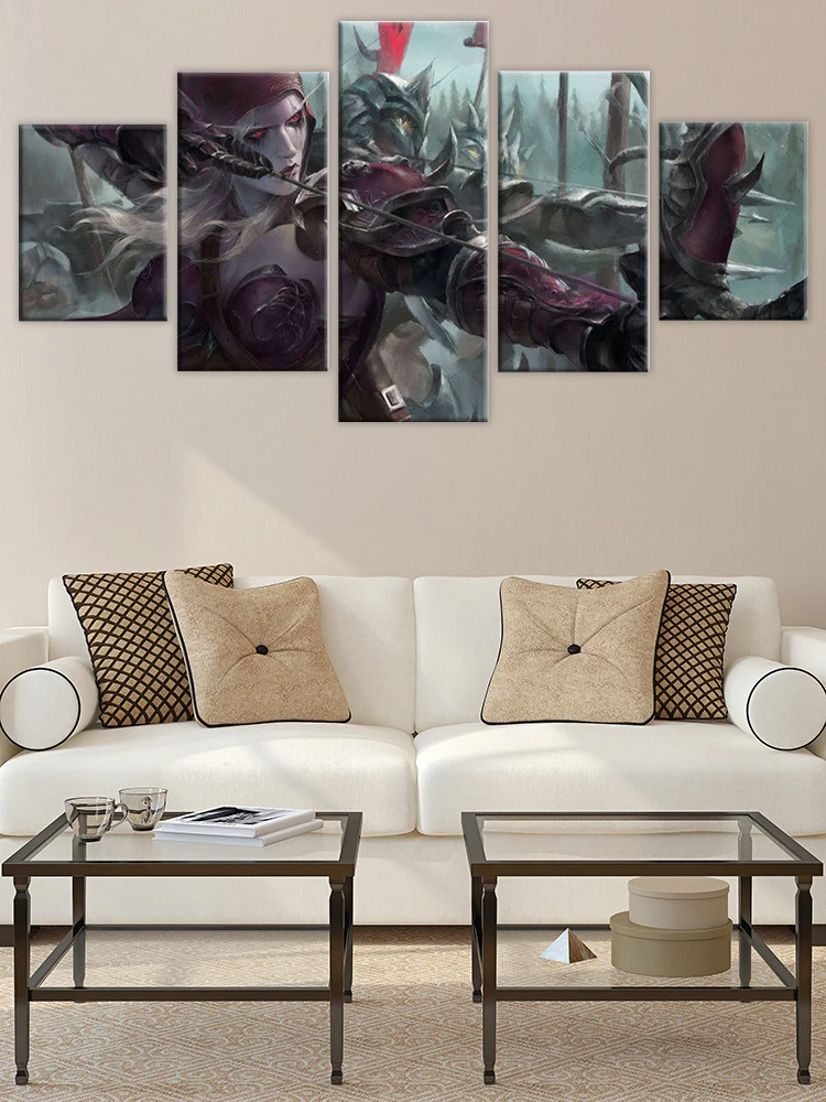 Картины на стену Wow Elf Archer, 5 панелей, принт, постер для украшения гостиной и дома