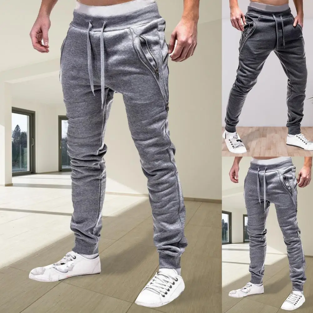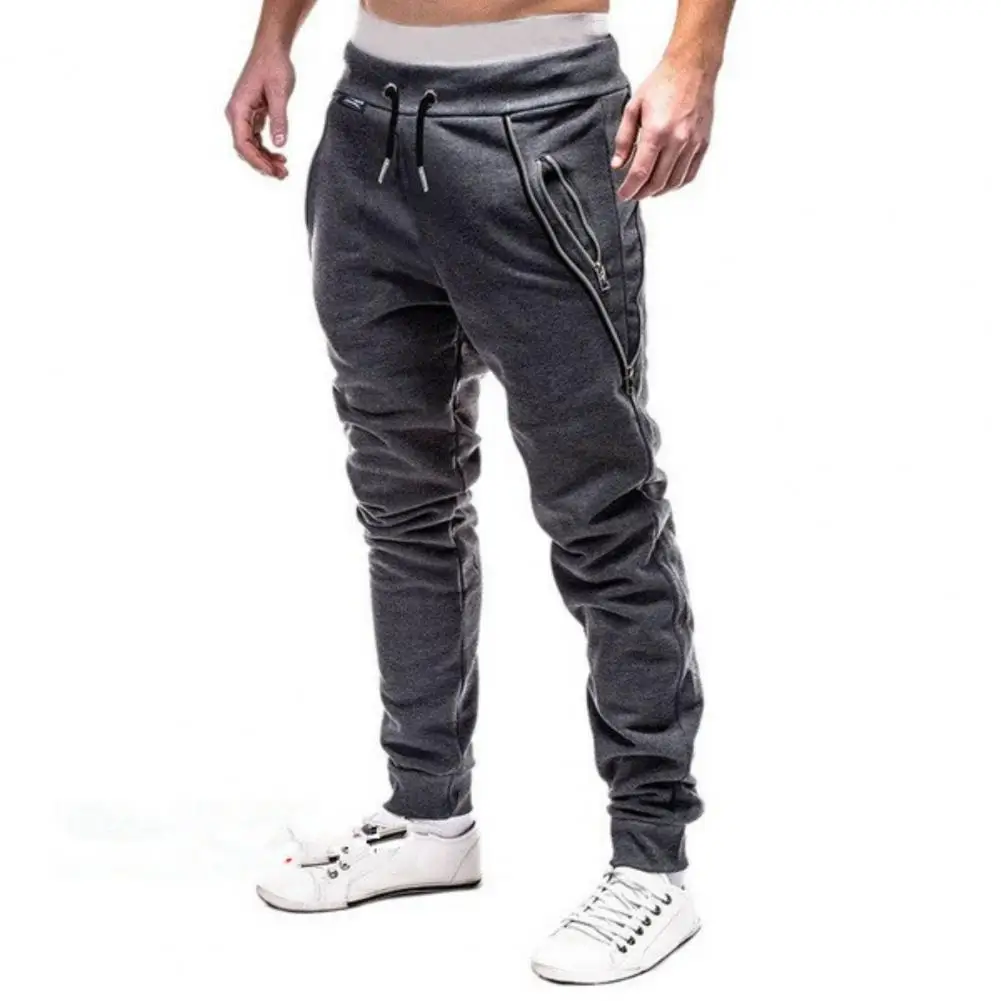 Для мужчин кулиска карманы на молнии ботильоны с перекрестной шнуровкой впитывает пот и Штаны спортивные брюки узкие Штаны Повседневное тонкий Высокая талия на открытом воздухе, брюки свободного покроя
