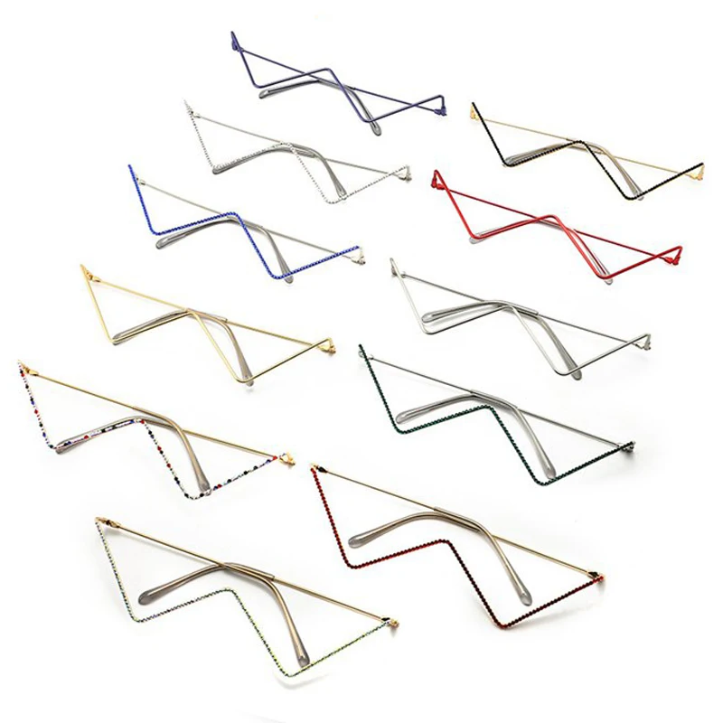 Модные очки V-образной формы с оправой стразы женские роскошные брендовые дизайнерские геометрические женские мужские солнцезащитные очки с металлической оправой SG058