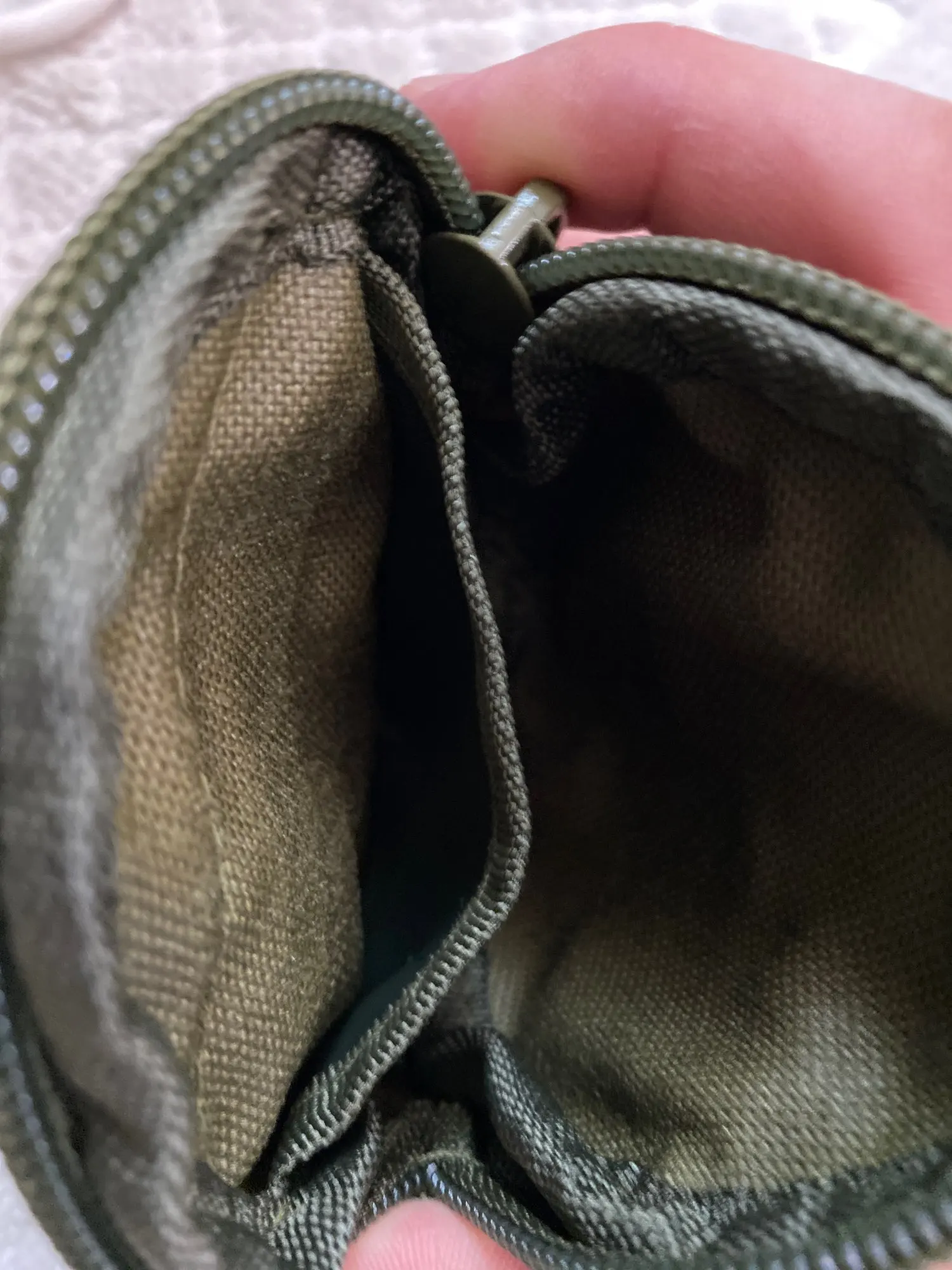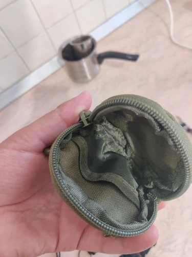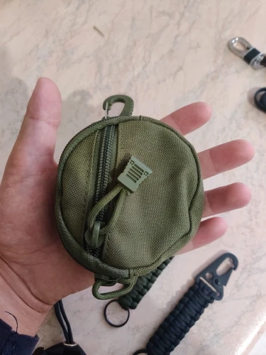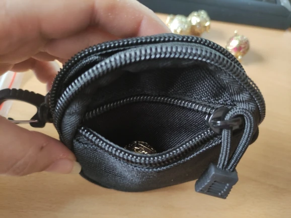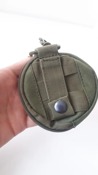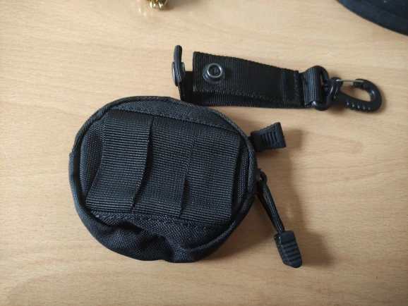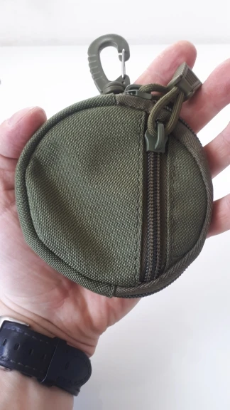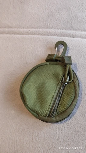 Оценка. Получил в 14d. Хорошие швы и хорошие молнии. Нейлон, водонепроницаемый и без странного запаха. Он имеет 2 внутренних отсека и карман с внешним застежкой-молнией. Измерения ок. Диаметр 10 см и фон 2 см. Сзади у него есть ремешок с пробкой и карабином, чтобы зацепить рюкзак или тактический ремень, ремешок, который можно снять целиком. Карабин кажется сильным и устойчивым к тому, что он есть, и не открывается сам по себе. Мнение: Я бы купил его снова за € 2,50 максимум, мне кажется, что он очень полезен для хранения ключей и денег, и что они не будут потеряны везде в рюкзаке.