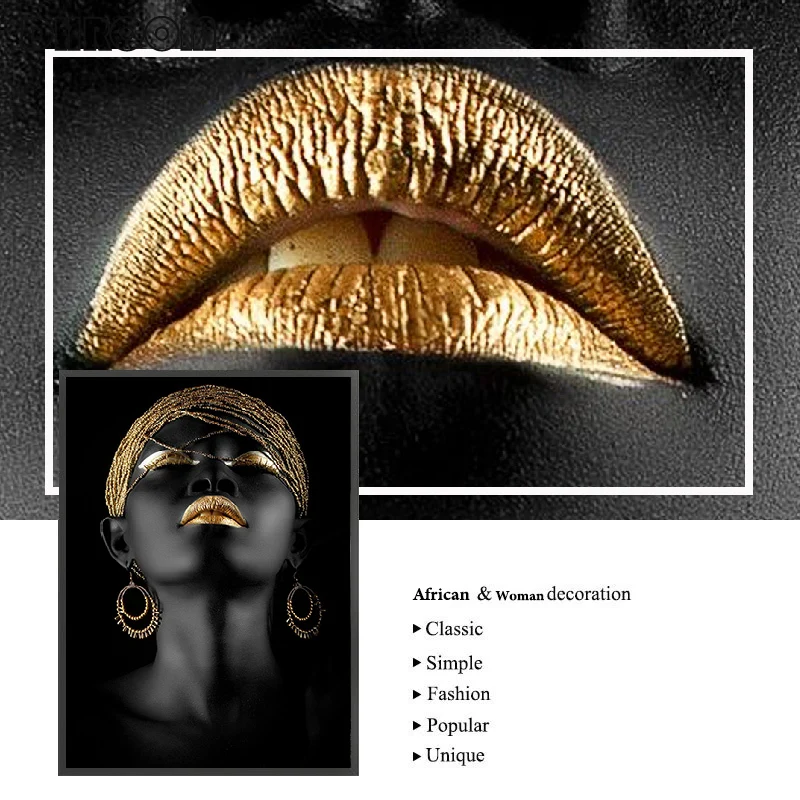 Картина на холсте в африканском стиле, постеры и принты черного и золотого цвета для женщин, скандинавский Настенный декор, Современное украшение для дома