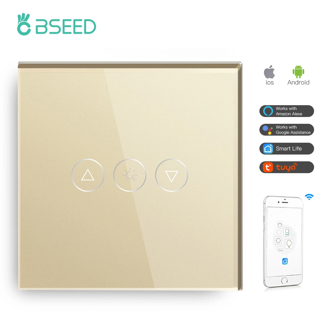 Умный регулятор яркости BSEED, Wi-Fi, 1 клавиша, с белым, черным, золотым цветом, стеклянная панель, Поддержка приложения Tuya Google Smart App