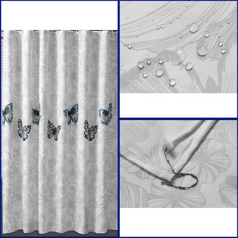 Шторы для душа, Современная Водонепроницаемая занавеска для душа с изображением бабочек, с s-образным крючком, защита от плесени, полупрозрачные, для домашнего декора