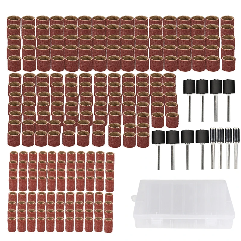 Набор абразивных инструментов 252 шт., набор шлифовальных лент 1/4 3/8 1/2 дюймов, барабанный шлифовальный набор с шлифовальными вращающимися инструментами шпиндели для Dremel