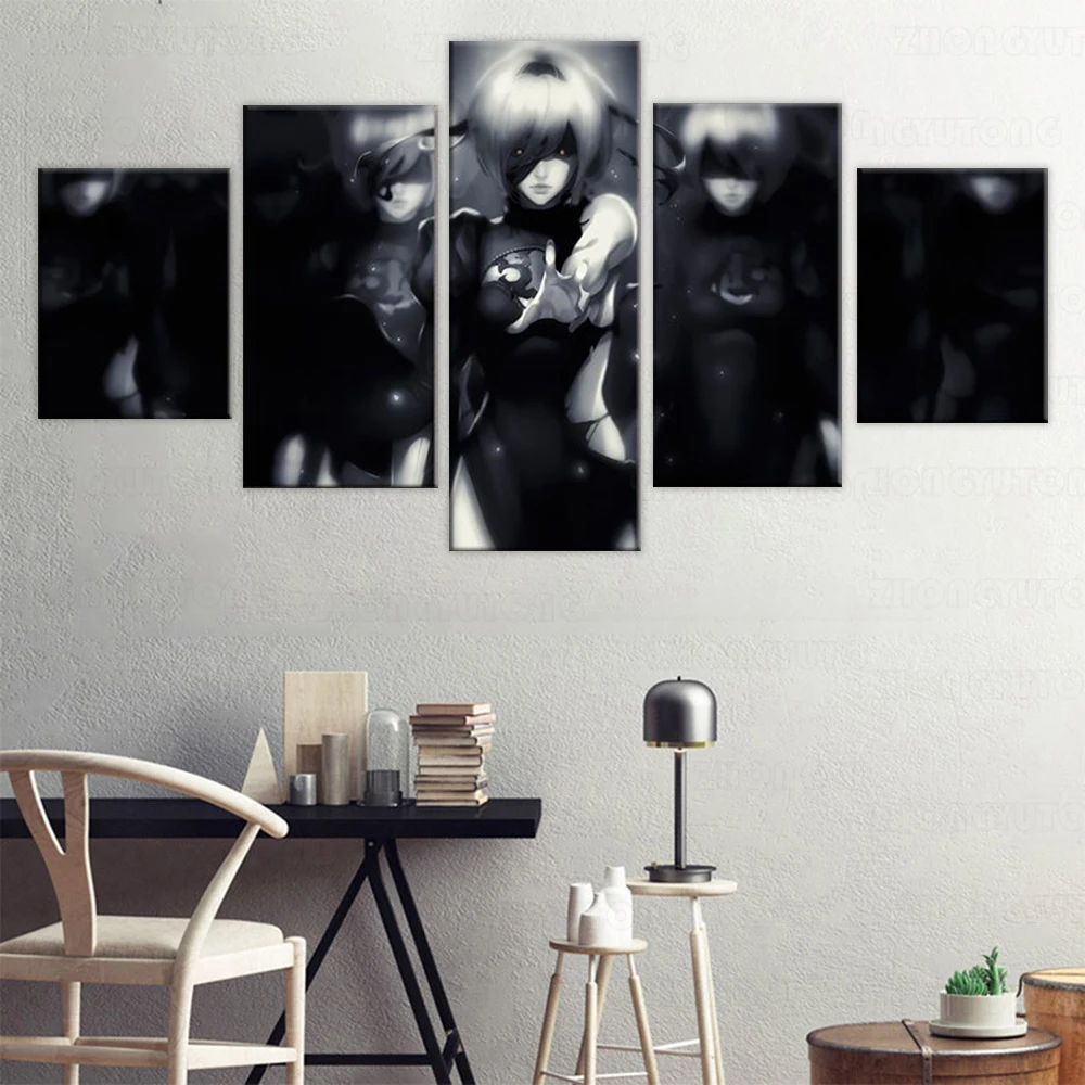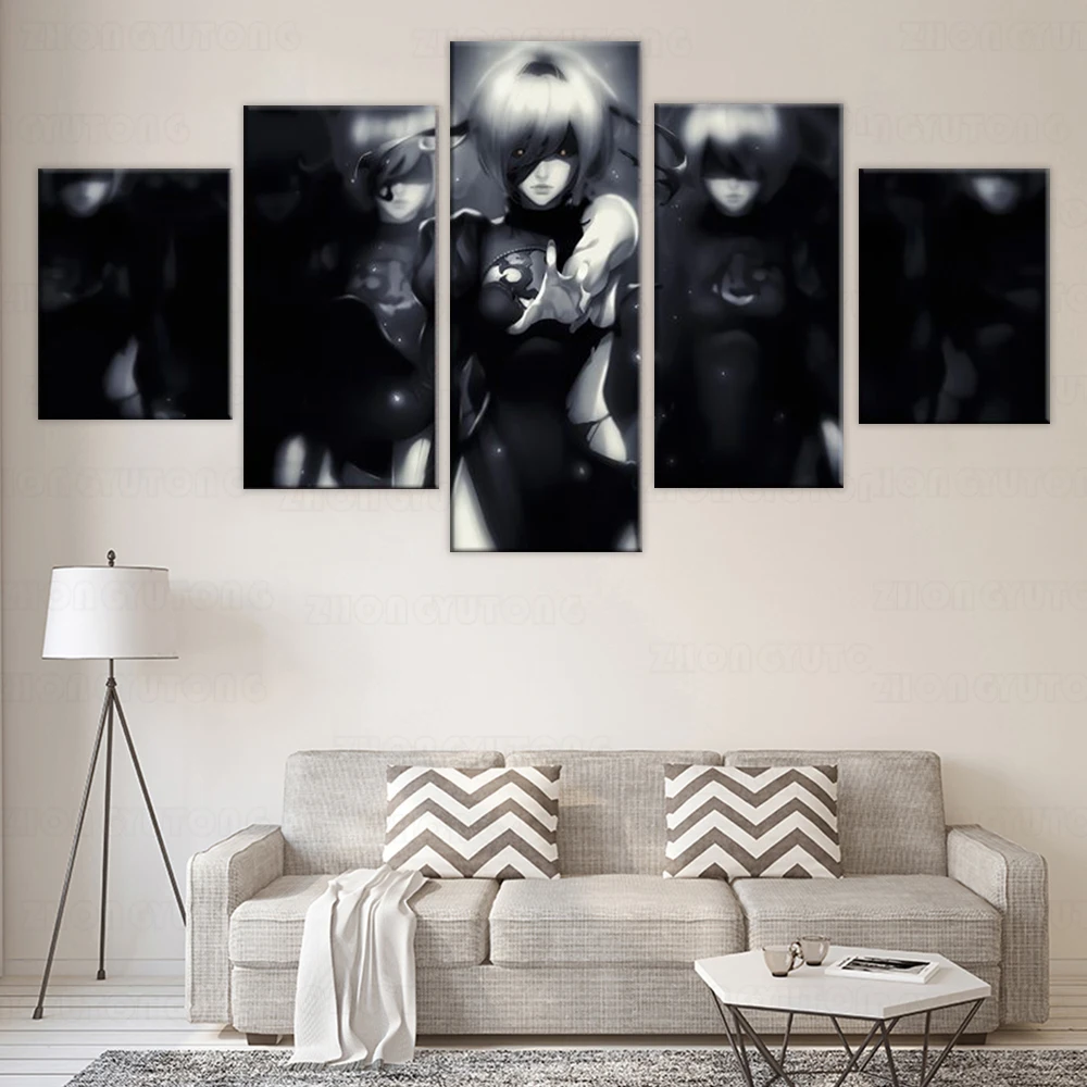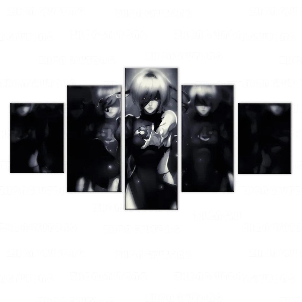 Картина на стену Nier Automata с изображением аниме для девушек, 5 панелей, современная картина, картина в рамке для спальни