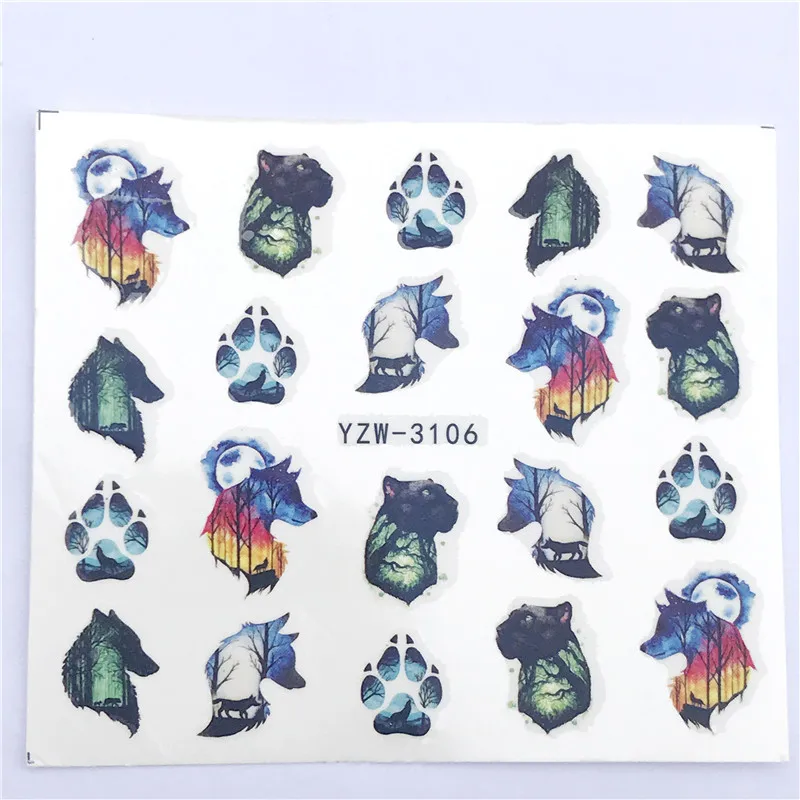 Водные Наклейки для ногтей Наклейка с изображением лесных животных Волк украшения для ногтей водяной знак наклейки для нейл-арта аксессуары для маникюра