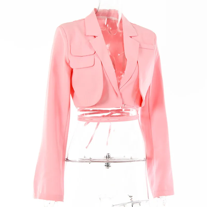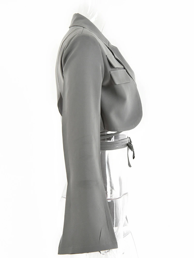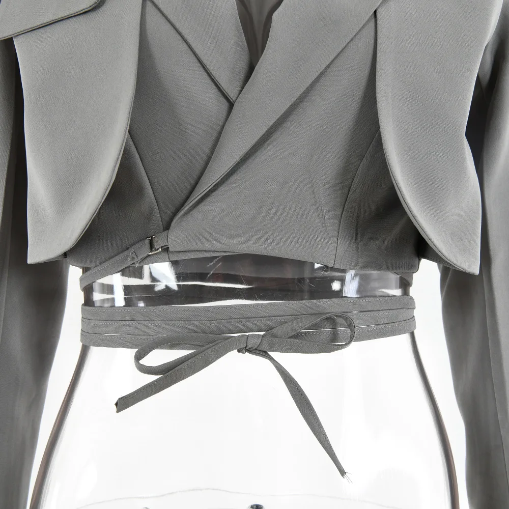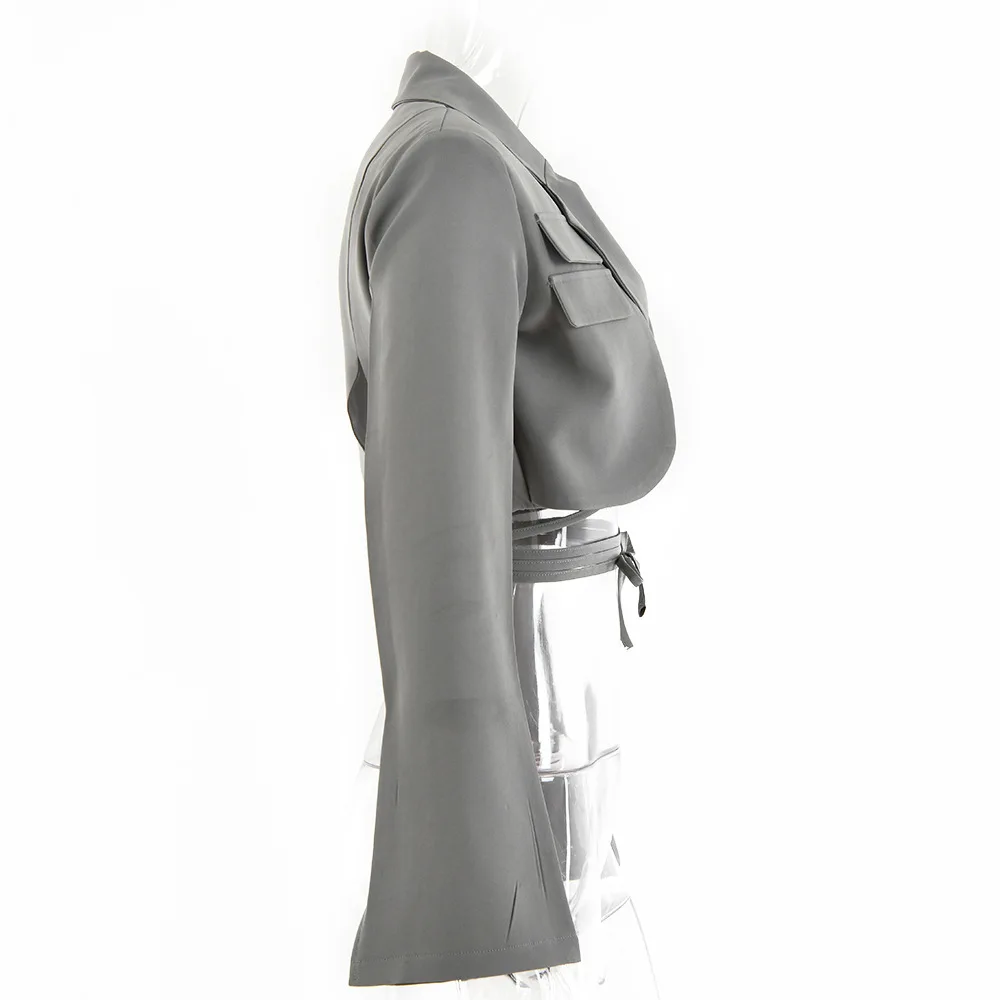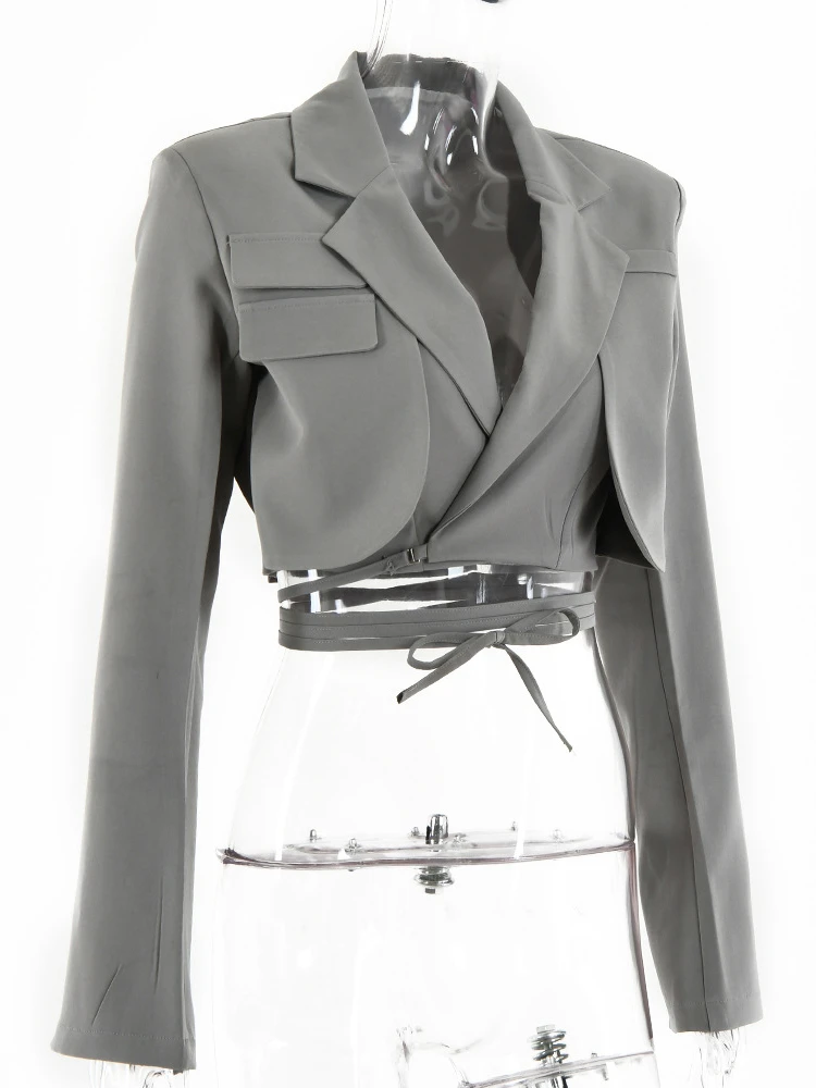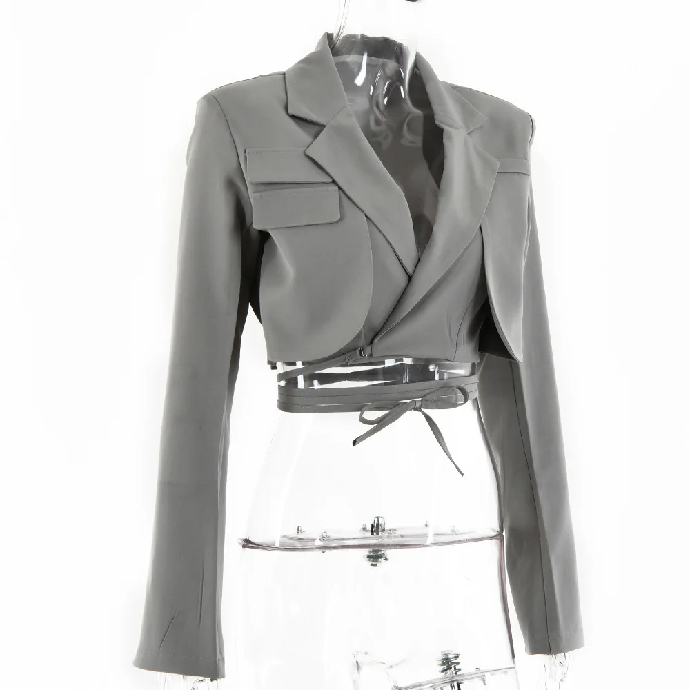 Женский двухслойный обтягивающий Блейзер Articat, короткий жакет серого цвета с длинным рукавом и английским воротником, верхняя одежда, 2021