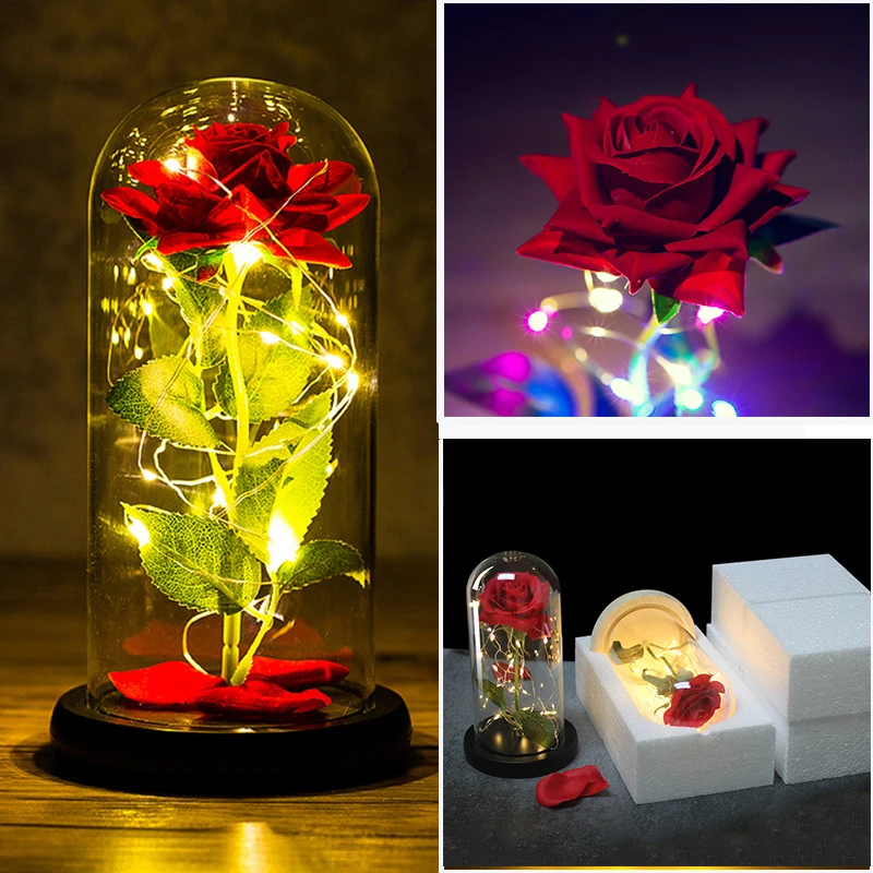 Красота и с рисунком из мультфильма Красавица и Чудовище Роза в светодиодный Стекло купол навсегда; Цвет: ярко-красный, розовый; Ко Дню Святого Валентина День матери специальные романтический подарок на день рождения