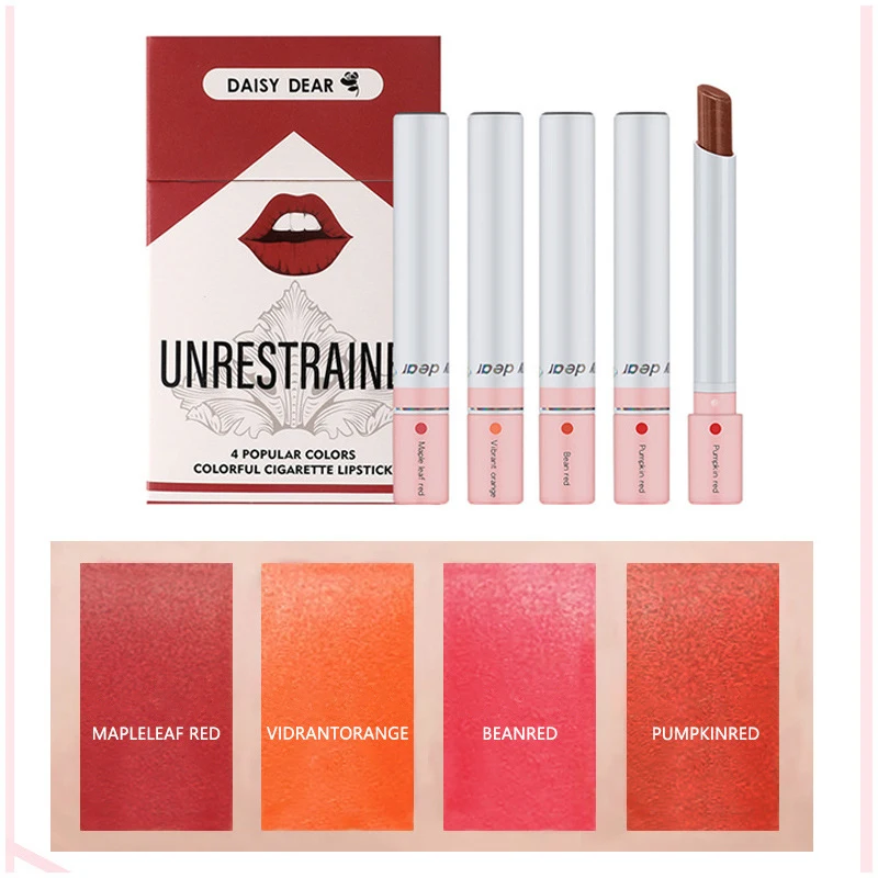 Креативная сигарета для губ, глазурь, 4 шт., набор, 24 цвета, бархатные матовые длинные прочная водостойкая помада, сексуальные антипригарные чашки для макияжа губ TSLM1