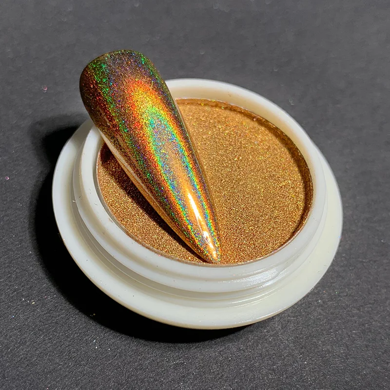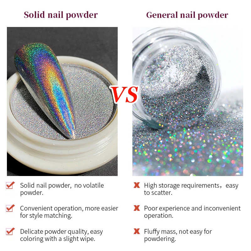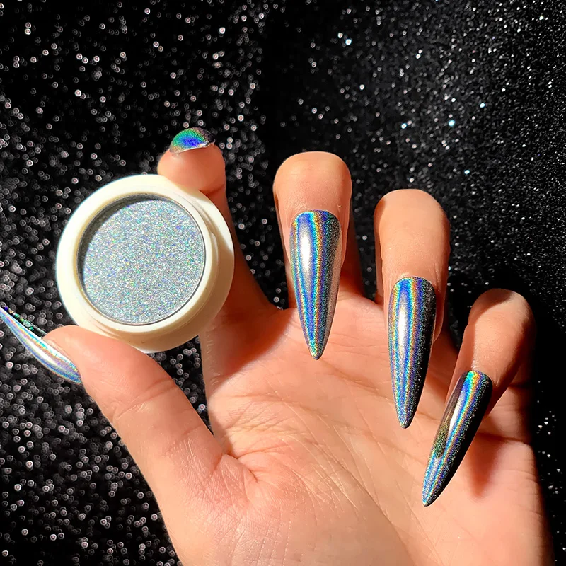 Красивая тонкая голографическая пудра с большой отражающей способностью. Очень красиво смотрится на ногтях!