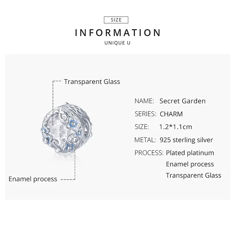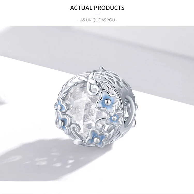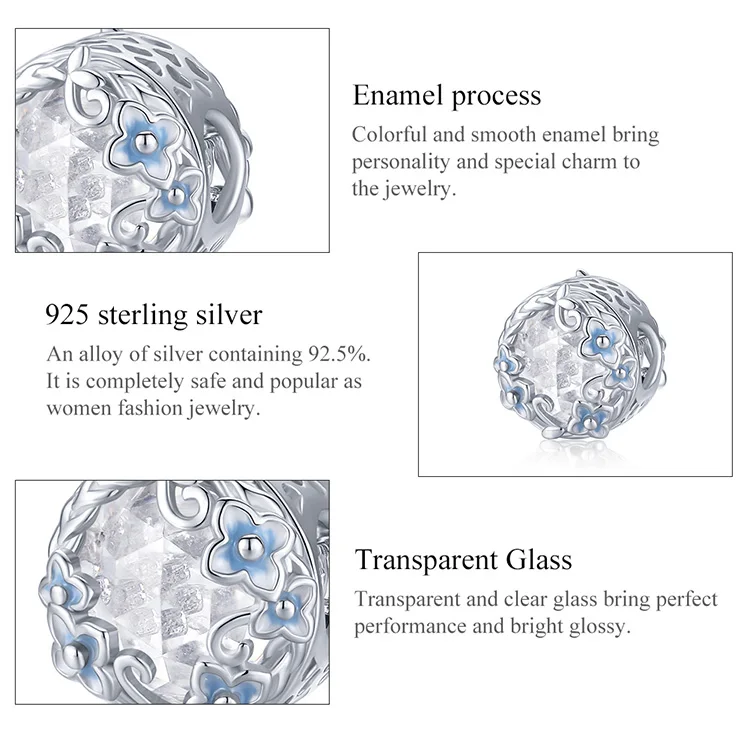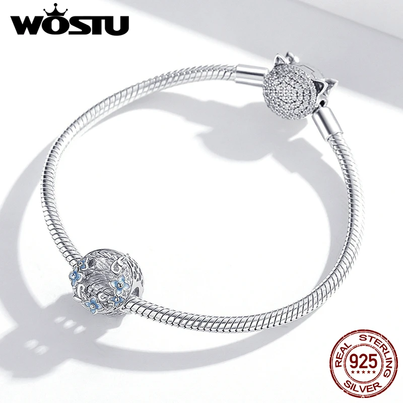 WOSTU 925 стерлингового серебра бисера Secret Garden Шарм эмалью с изображением синей цветущие кулон в форме оригинальный для браслетов и ожерелий DIY, иных JewelryCTC393