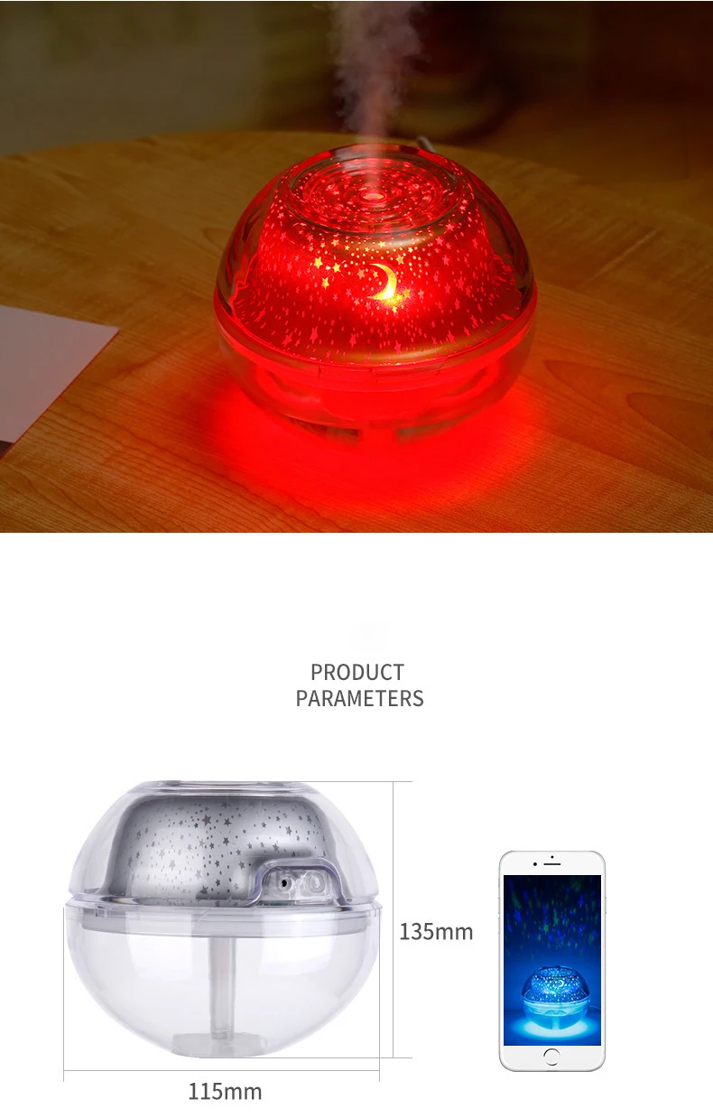 Увлажнитель воздуха с проекцией и цветным кристаллом, с USB-разъемом