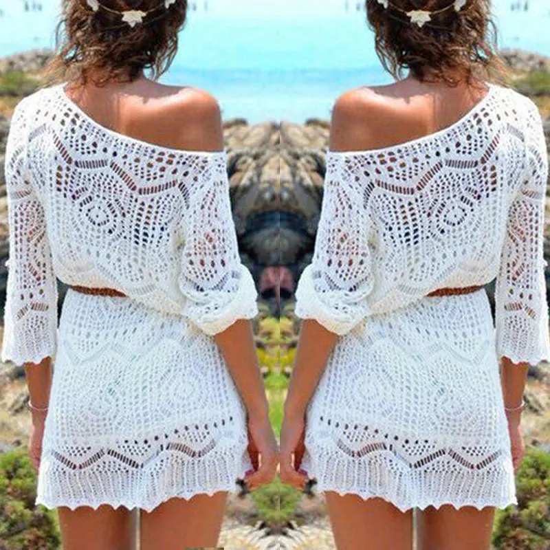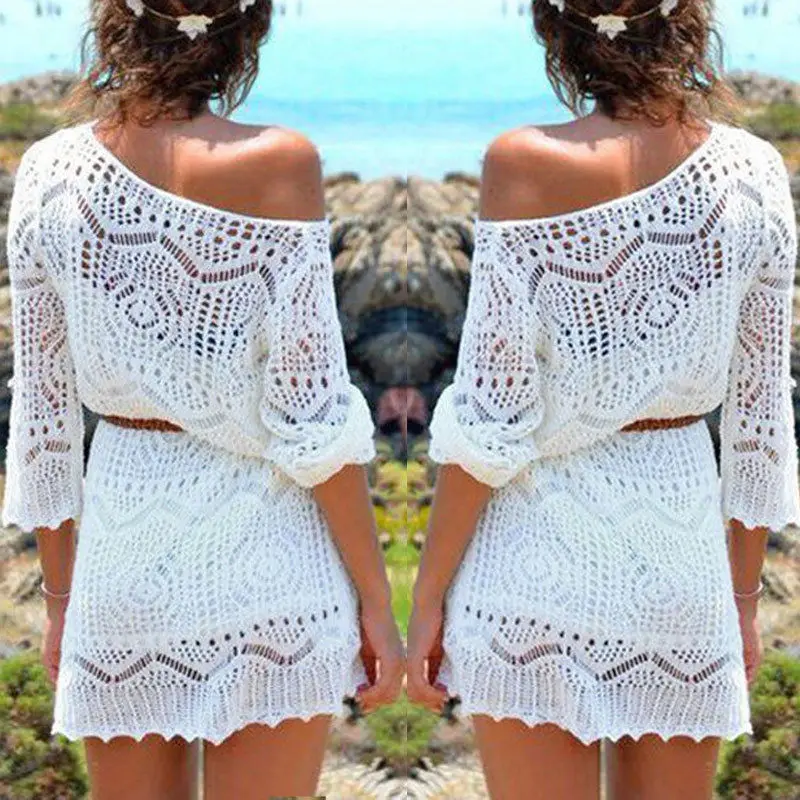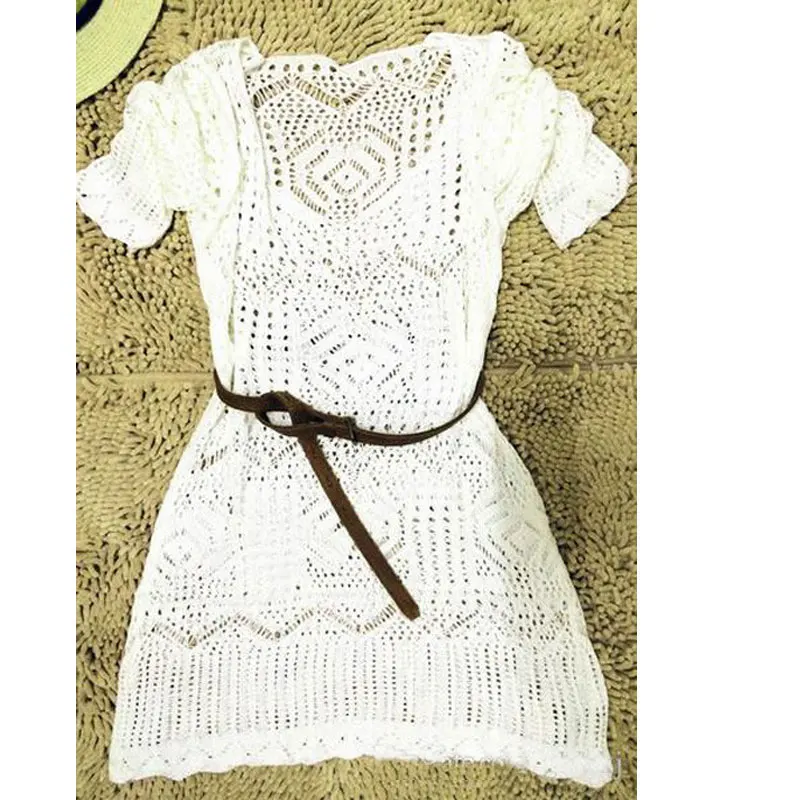 Сексуальное Кружевное вязаное крючком бикини, женский купальник, купальный костюм, летнее пляжное платье