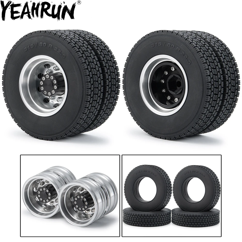 YEAHRUN металлический задний обод колеса и резиновый комплект шин для 1:14 Tamiya прицеп тягач Радиоуправляемый автомобиль колеса запчасти