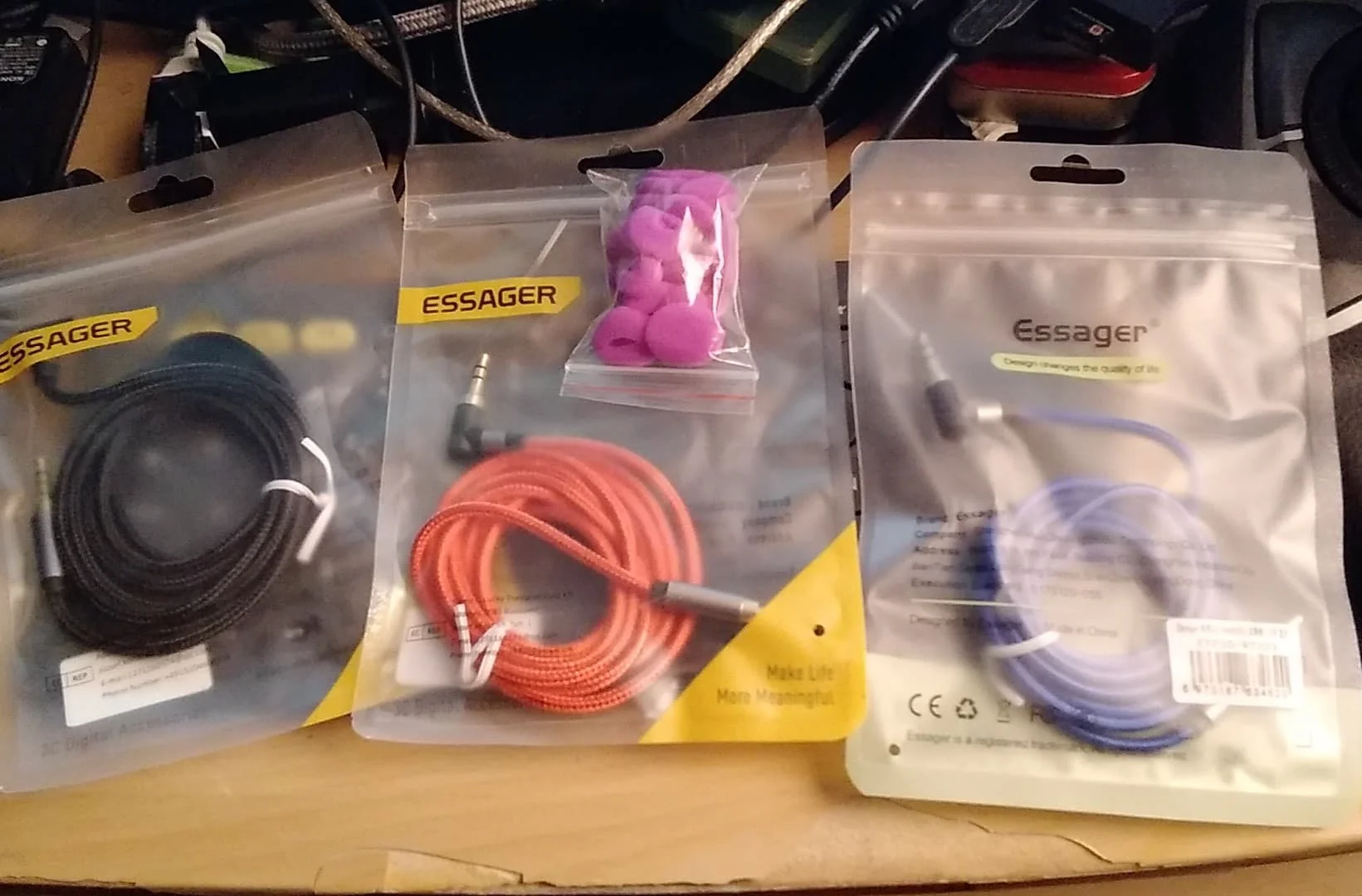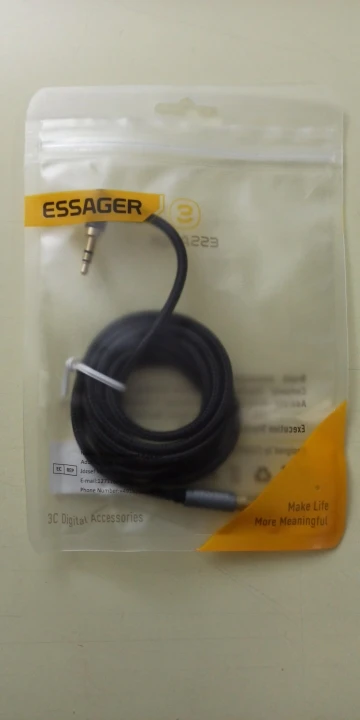 1,5m audio Cable with 3,5mm Jack On both ends, One of them AT 90 °. Кабель покрыт плетеной тканью, очень прочный и не запутывается легко. Алюминиевые и пластиковые разъемы чувствуют себя прочными, плотно прилегают и хорошо вписываются в любое устройство с крышкой. Очень хорошее соотношение цены и качества (2 доллара). У меня есть другие продукты этой марки, и я должен сказать, что это очень хорошо. Essager, продолжает предлагать качественную продукцию по хорошей цене.