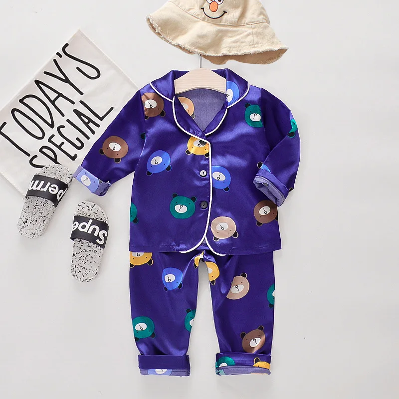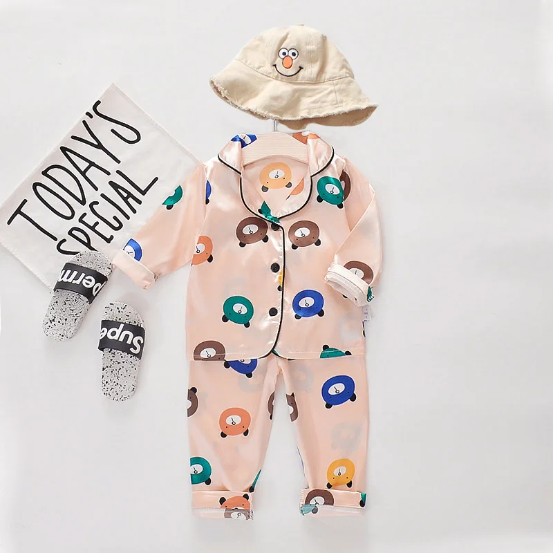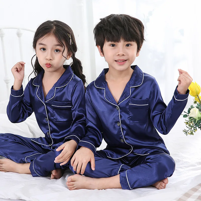 Пижама для мальчиков и девочек, шелковая, атласная, на пуговицах, 2 шт., комплект домашней одежды