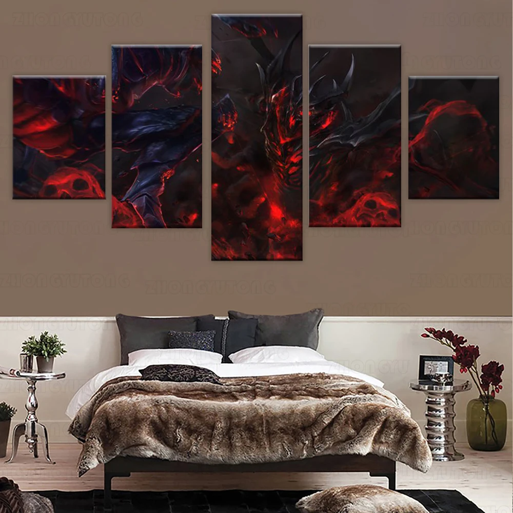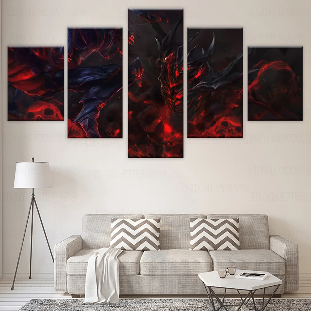 DOTA2 тень Fiend настенная живопись на холсте картина печать 5 панелей домашний декор плакат для гостиной модульный