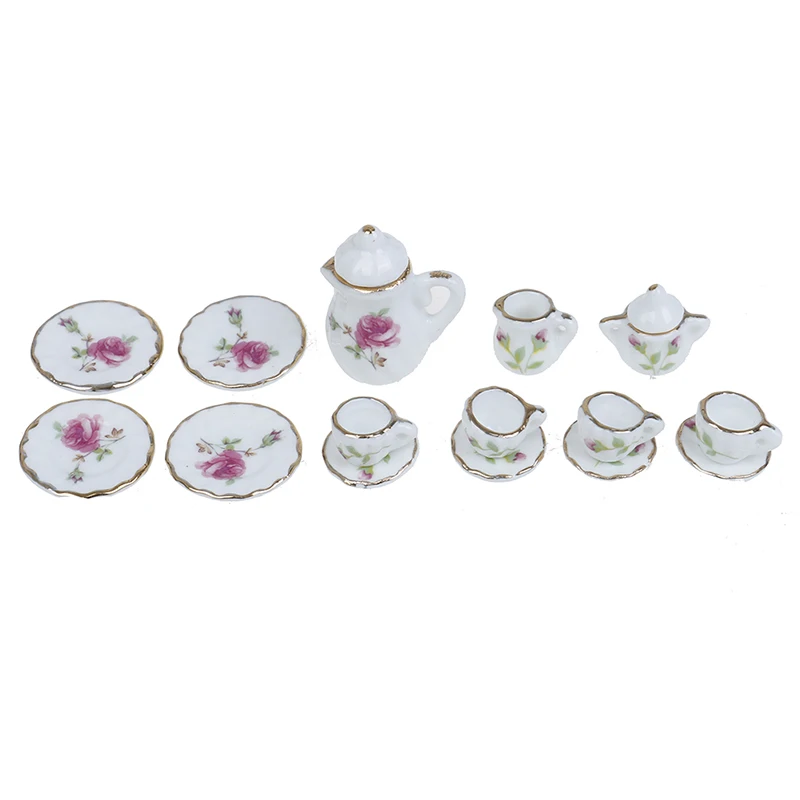 15 шт. 112 Миниатюрный Кукольный дом розовый цветок Паттен фарфор кофе чай чашки керамические посуда для кукол кухонные аксессуары