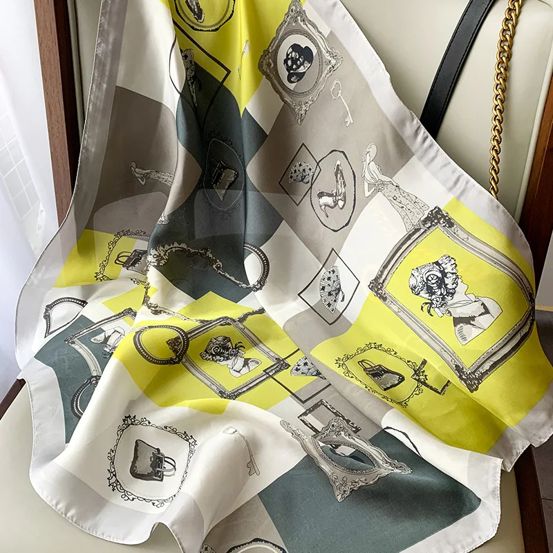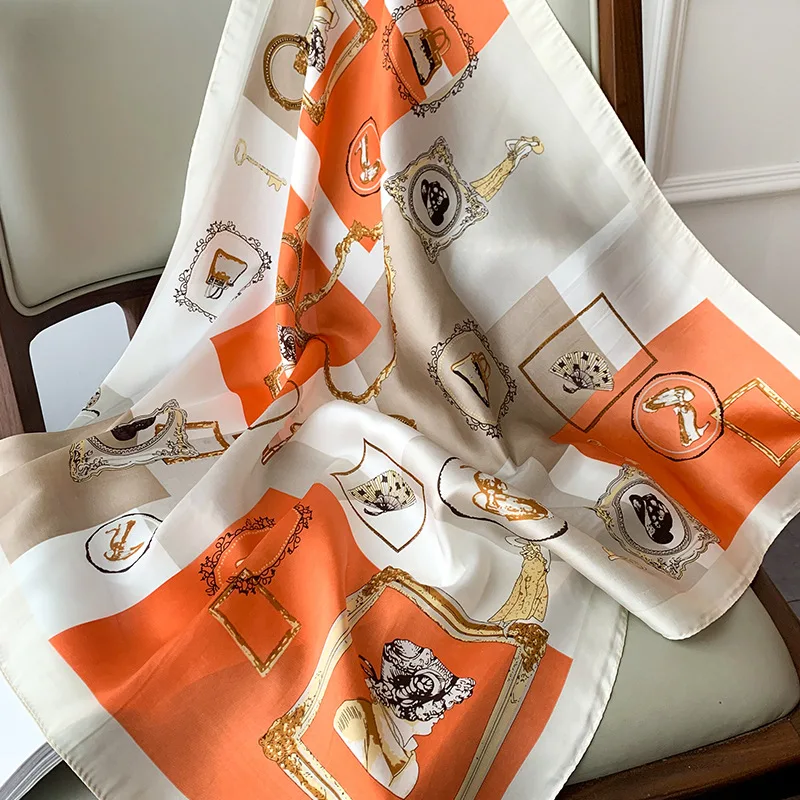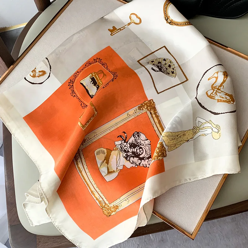 Квадратные шарфы высшего качества 70*70 см, женский шелковый шарф, ...