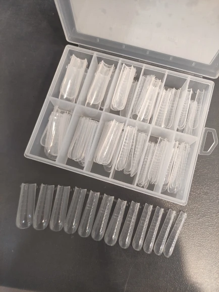 Пришли быстро. Как и заявлено, 60 штук. 12 пакетиков по 5 размеров. Никак не пронумерованы, не проблема, сама пронумерую. Это самая недорогая цена за данный товар. В работе не пробовала, но заранее знаю, что понравятся. К моей кутикуле идеально, ни подпиливать, ни подрезать не буду. Формы приближены к натуральным. гибкие, арку можно легко поджать. И товар, и продавца рекомендую.