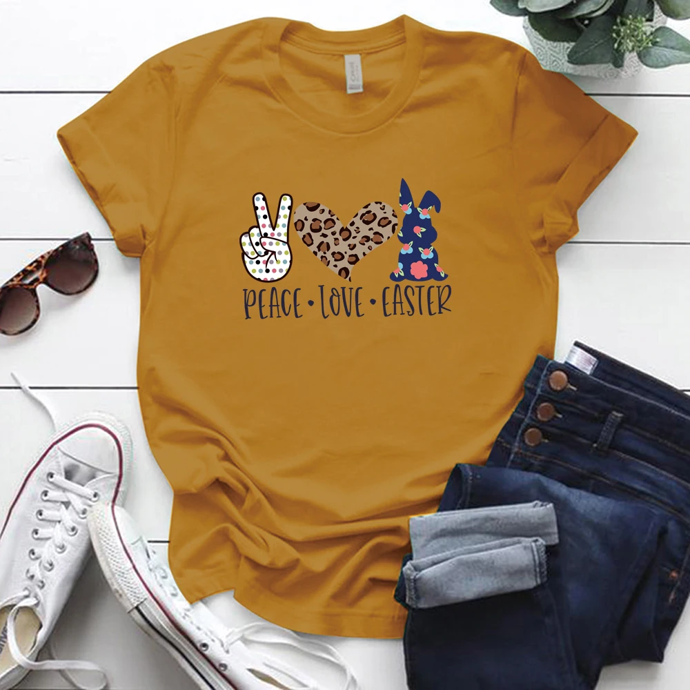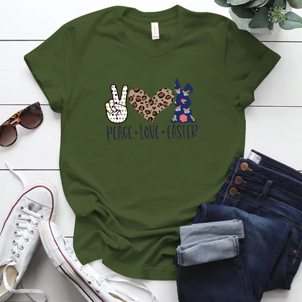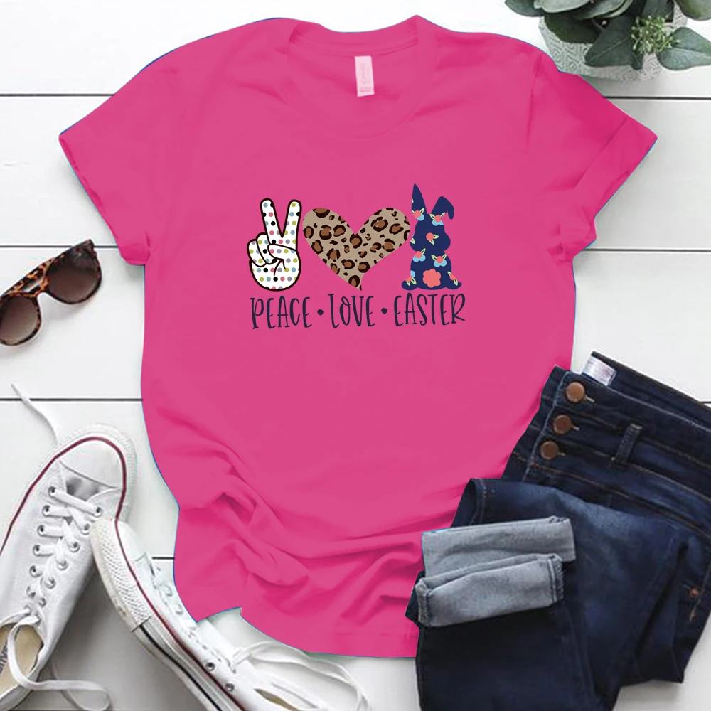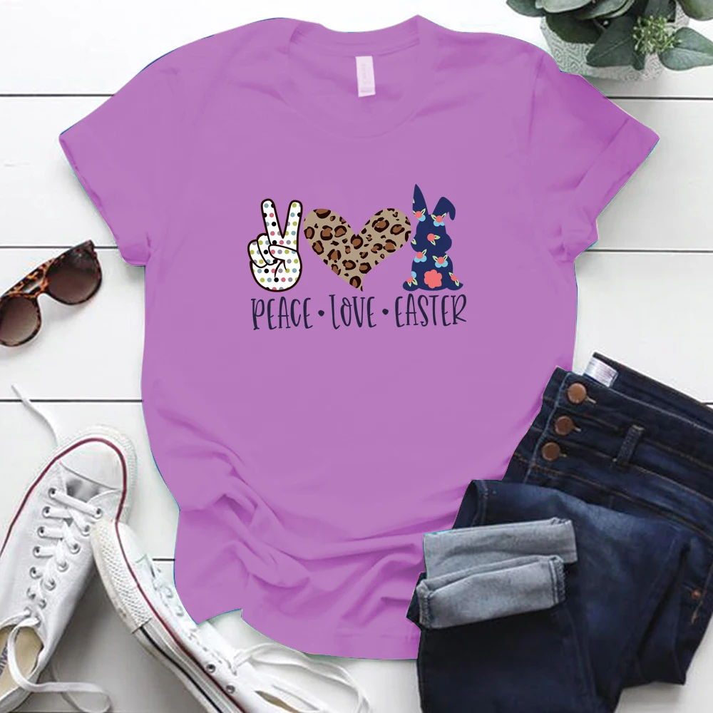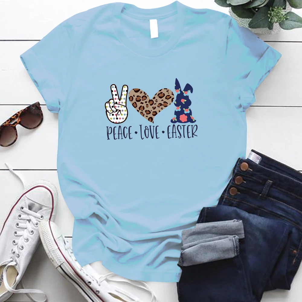 Peace Love пасхальные принт женские футболки с коротким рукавом Свободная горловина летняя одежда для девочек топы для детей для женщин; Большие размеры S-5xl Пасхальный День Святого Валентина Футболка