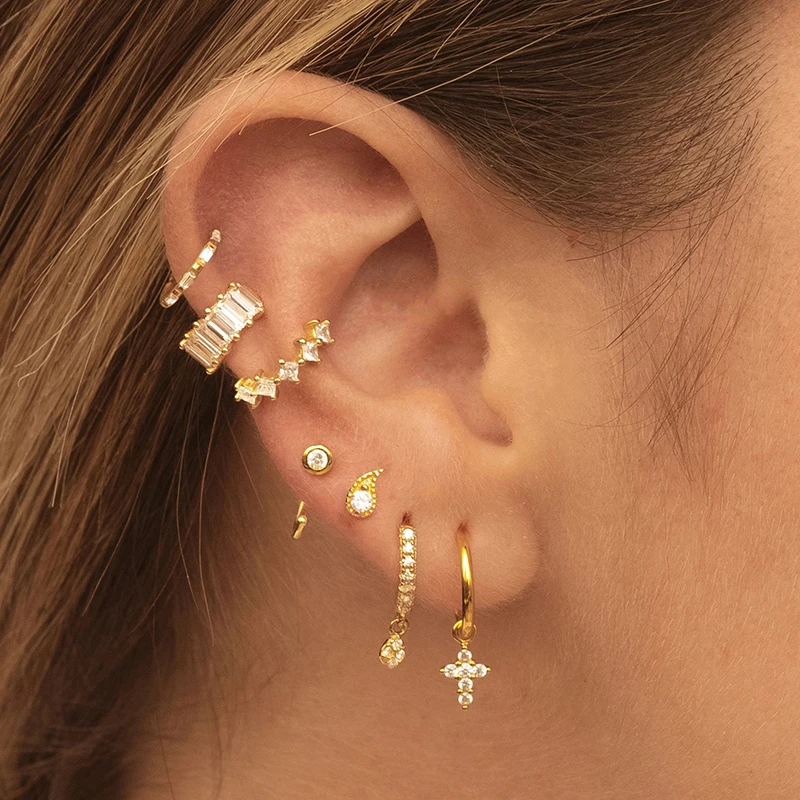 Серьги-гвоздики с перфорированным хрящевым покрытием женские, геоме...