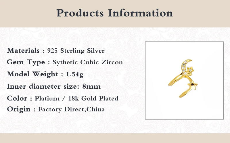 Автоклав 1 шт. Earcuff 925 пробы Серебряные серьги для Для женщин прозрачный фианит с изображением луны и звезд, серьги-Клипсы из нержавеющей стали, модные серьги в форме W5
