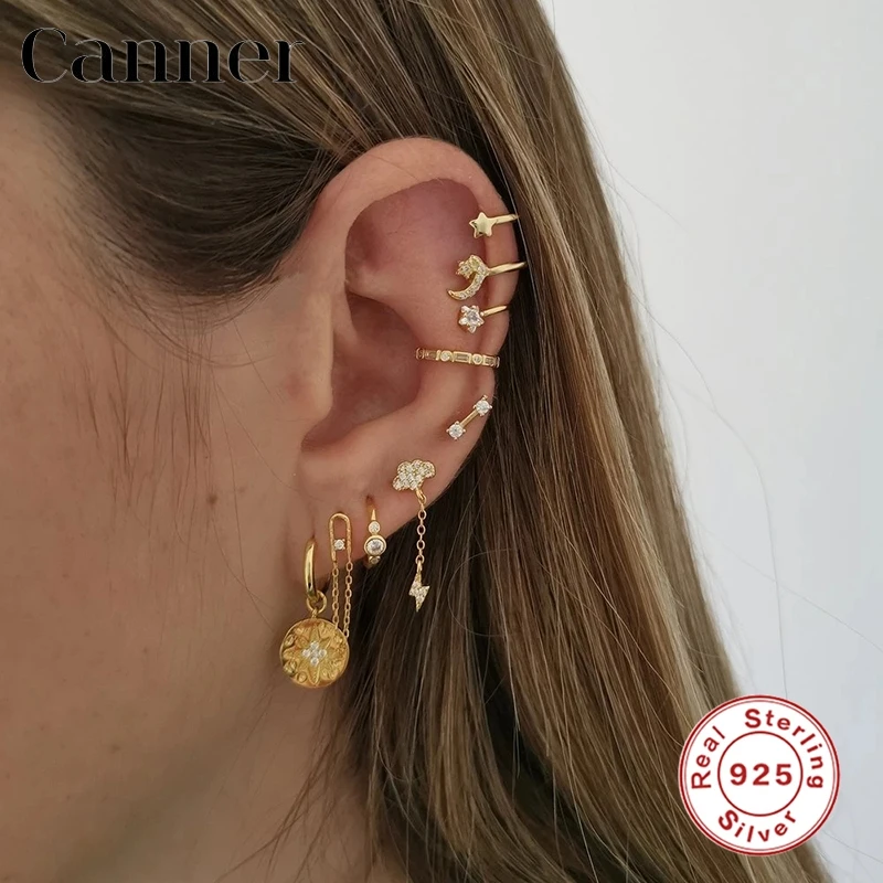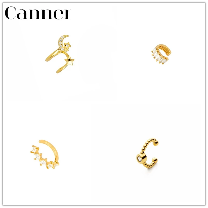 Canner 1 шт серьги 925 пробы серебряные серьги для женщин прозрачный циркон Звезда Луна клип на серьги хрящи Pendientes W5