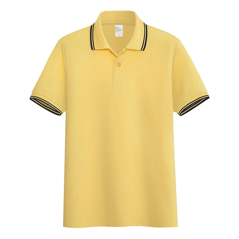 Рубашка-поло AOLIWEN мужская с двумя полосками, 65% хлопок, на пуговицах, с коротким рукавом, Повседневная Деловая Спортивная облегающая однотонная, лето