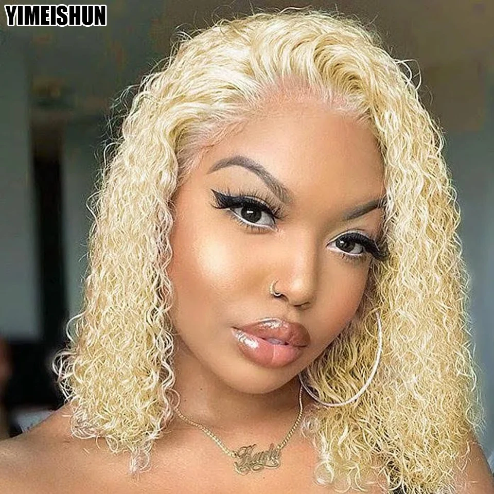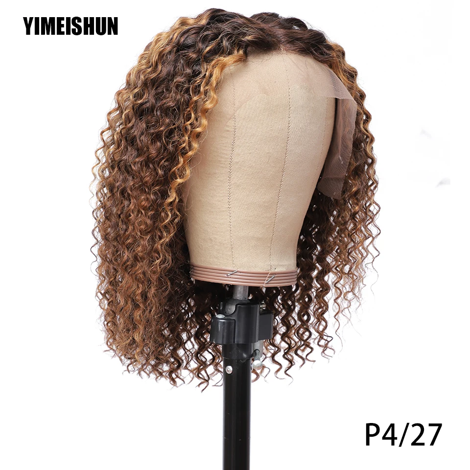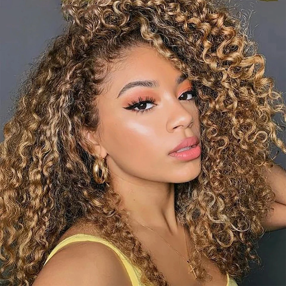 Парик из натуральных кудрявых волос бразильского, медового цвета, HD, плотность 613, 13x4, 180