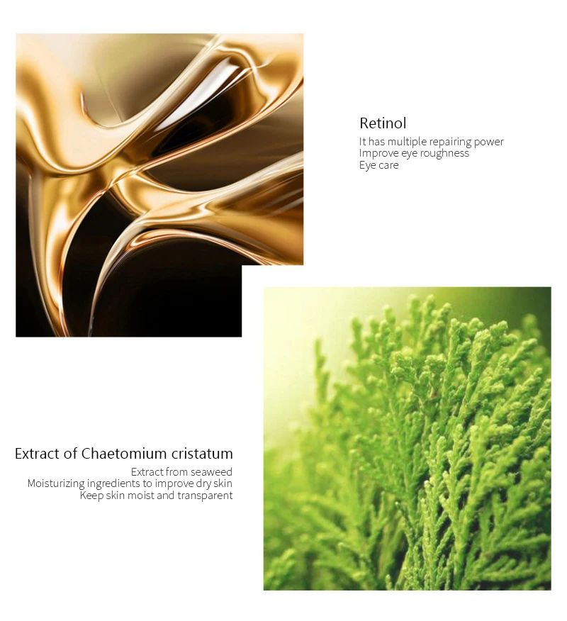 1. Увлажнение: увеличение эластичности кожи, облегчение мешков под глазами, улучшение темных кругов, лечение усталости глаз, уменьшение отечности, гусиных ног и тонких линий с уникальным сочетанием натуральных ингредиентов