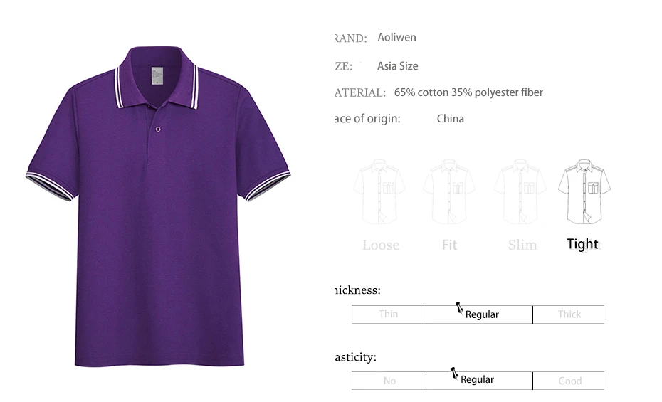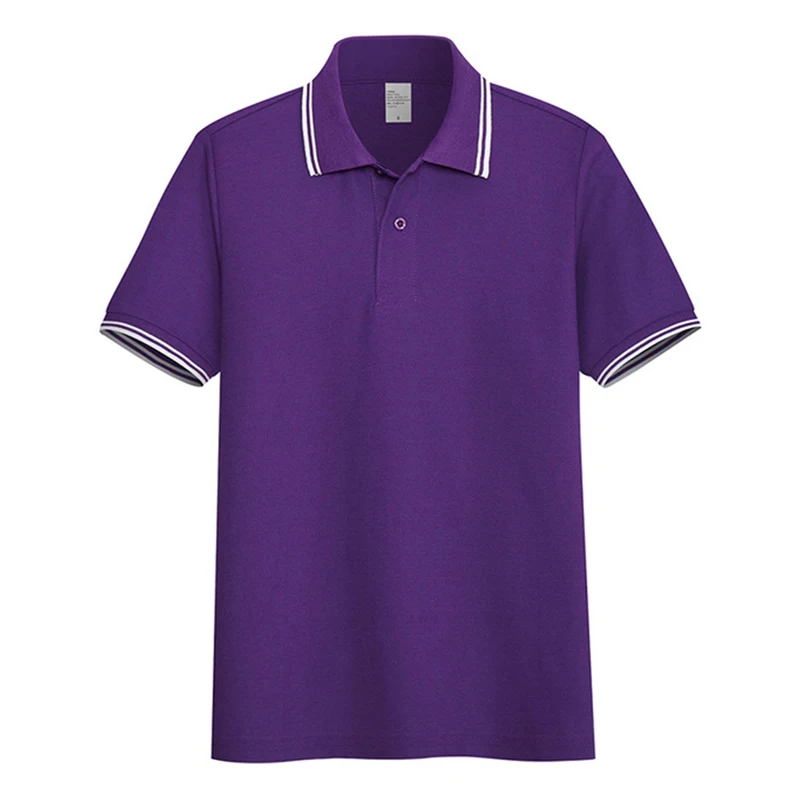 Рубашка-поло AOLIWEN Мужская в полоску, однотонная Повседневная Деловая впитывающая, из 65% хлопка, с коротким рукавом, облегающая, фиолетовый цвет