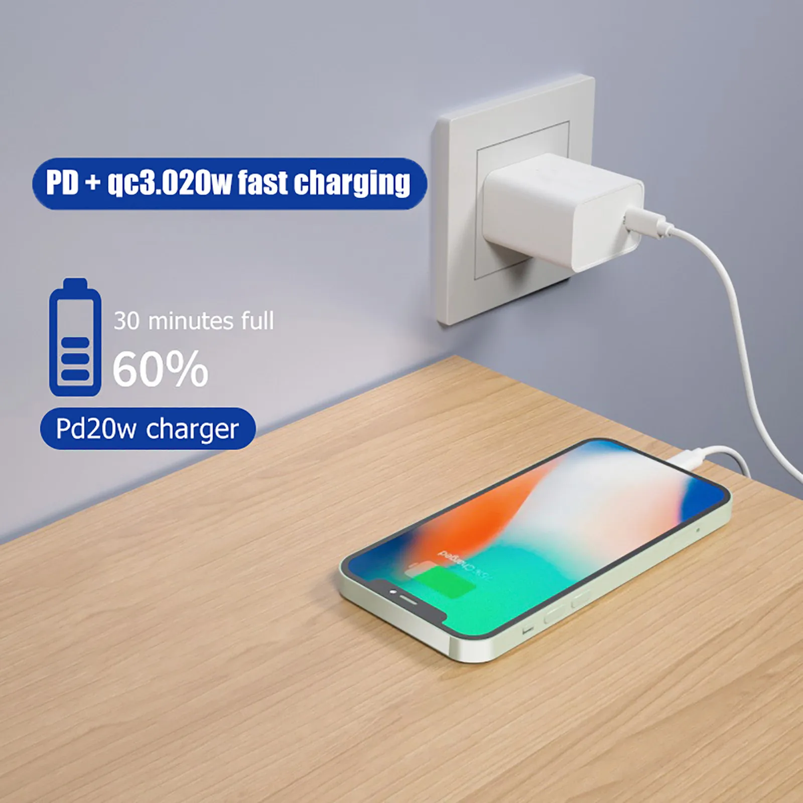 Особенности: * Быстрая зарядка 20 Вт PD, высокая сила тока, безопасная и быстрая зарядка. * Безопасная и быстрая зарядка. Не повреждает аккумулятор. * Фильтр опасности, сертификация безопасности, будьте уверены в использовании. * Огнестойкость и высокая термостойкость. PC Защита окружающей среды огнеупорные материалы, зарядка безопасна. * Полностью совместим с интерфейсом type-C для быстрой зарядки Apple, Huawei, Xiaomi и других телефонов и планшетов. * Совместим с быстрой зарядкой PD. Для iPhone 12 Mini /12 /12Pro /12Pro Max, для iPhone 8 /8Plus /X /Xs /Xr /se2020, для iPhone 11 /11Pro /11Pro Max. Характеристики: Входные параметры: 220 (в) Параметры выхода: 5 (В) Тип: Прямая зарядка Ток зарядки: 3000 (мА) Интерфейс: Type-C Посылка включает в себя:1 x Зарядное устройство для iPhone