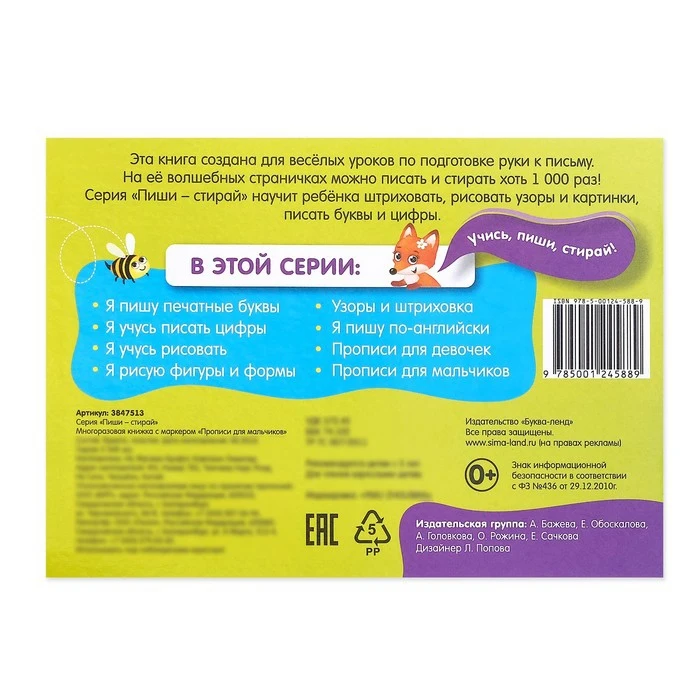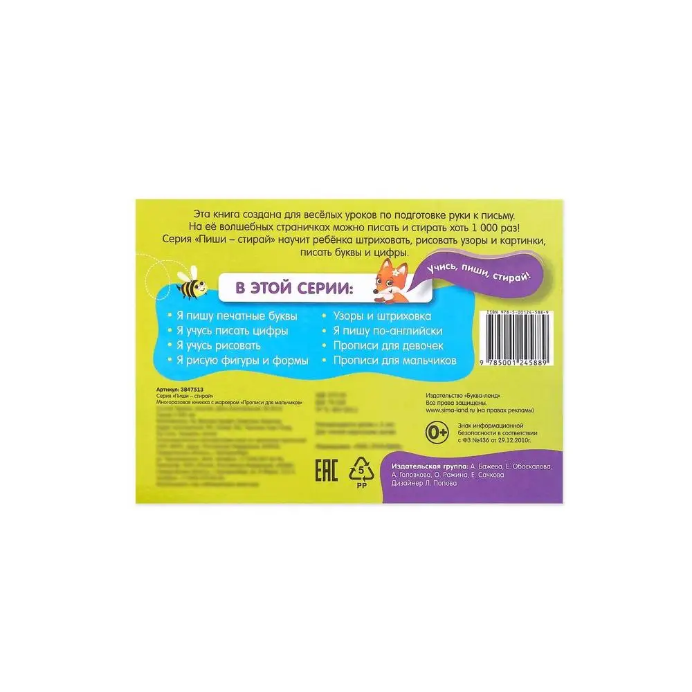 Многоразовая книжка с маркером Пиши-стирай. Я пишу печатные буквы, ...