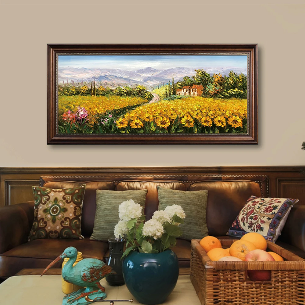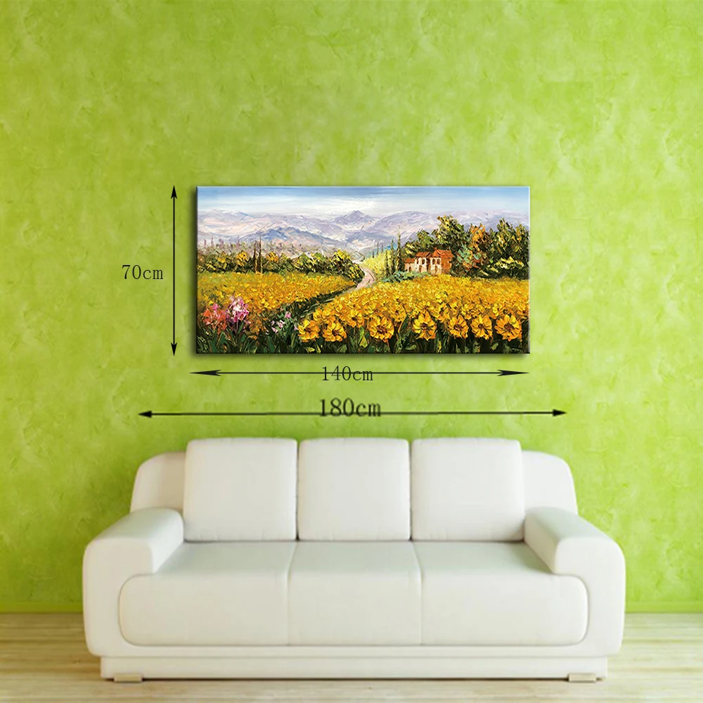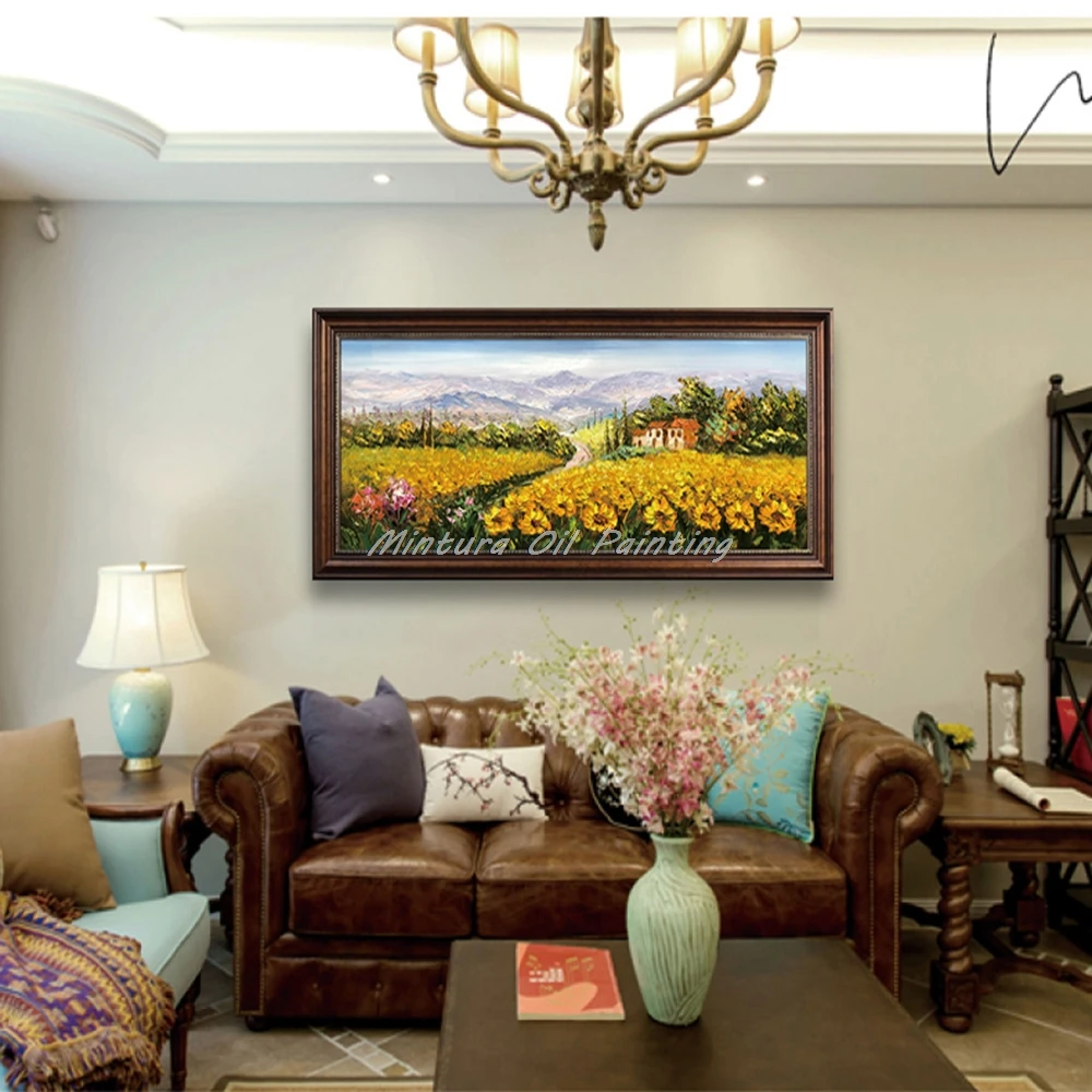 Картина на стену Mintura для гостиной Масляные картины на канве ручная роспись большое поле желтых цветов домашний декор искусство без рамки.