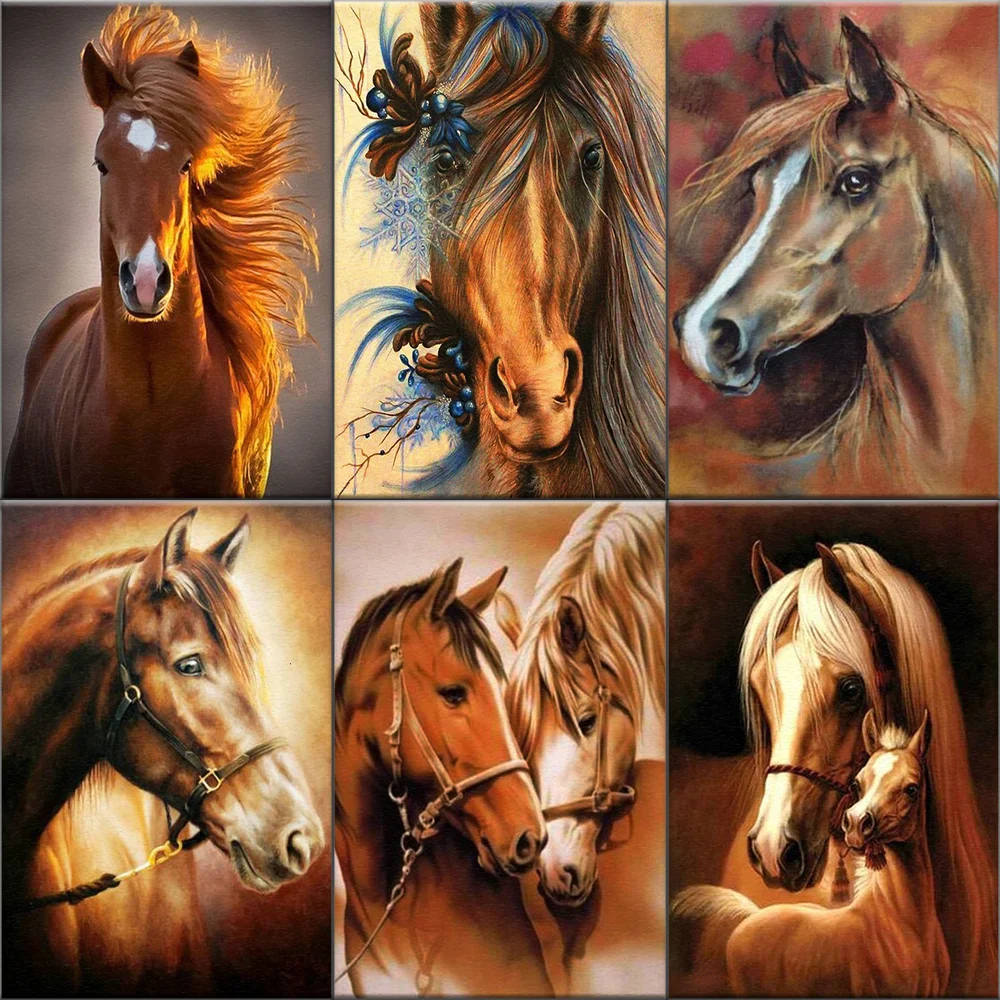 Алмазная 5D Вышивка сделай сам с изображением лошади, полный квадратные картины алмазами, Набор для вышивки крестиком с животными, мозаика, украшение для дома, креативный подарок