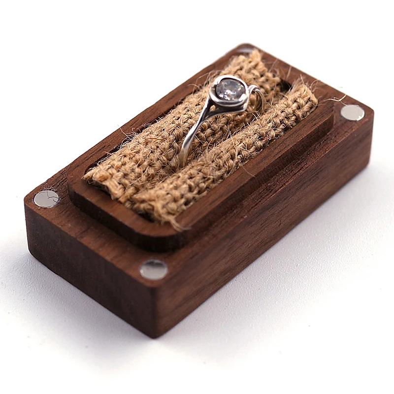 Деревянная шкатулка для обручальных колец в деревенском стиле, для невесты и жениха, квадратнаяКруглая Подарочная деревянная шкатулка для колец, 1 шт.