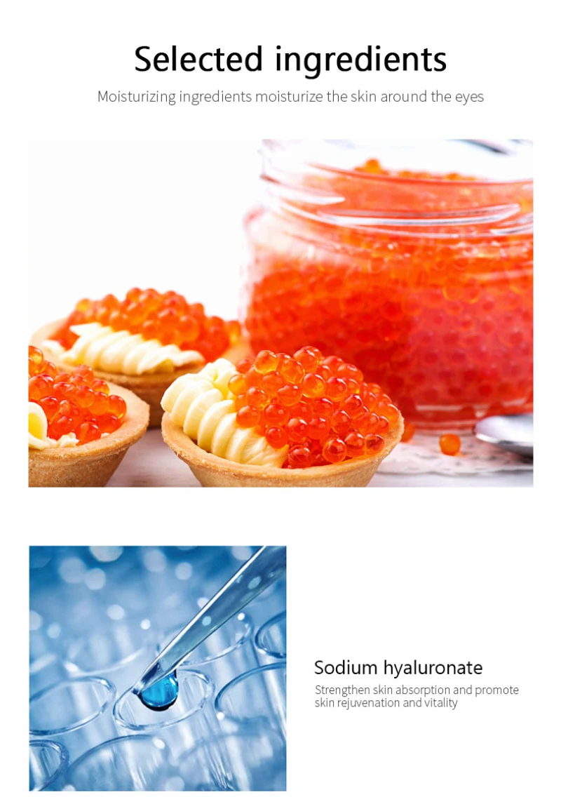 2. Высококачественный коллагеновый крем для глаз с золотым порошком может глубоко увлажнить нежную кожу глаз, повысить эластичность кожи, уменьшить мешки для глаз, уменьшить темные круги, обработать усталость глаз, уменьшить отеки, гусиные лапки и гусиные лапки, а также уменьшают тонкие линии. Уникальная природа. Ингредиенты