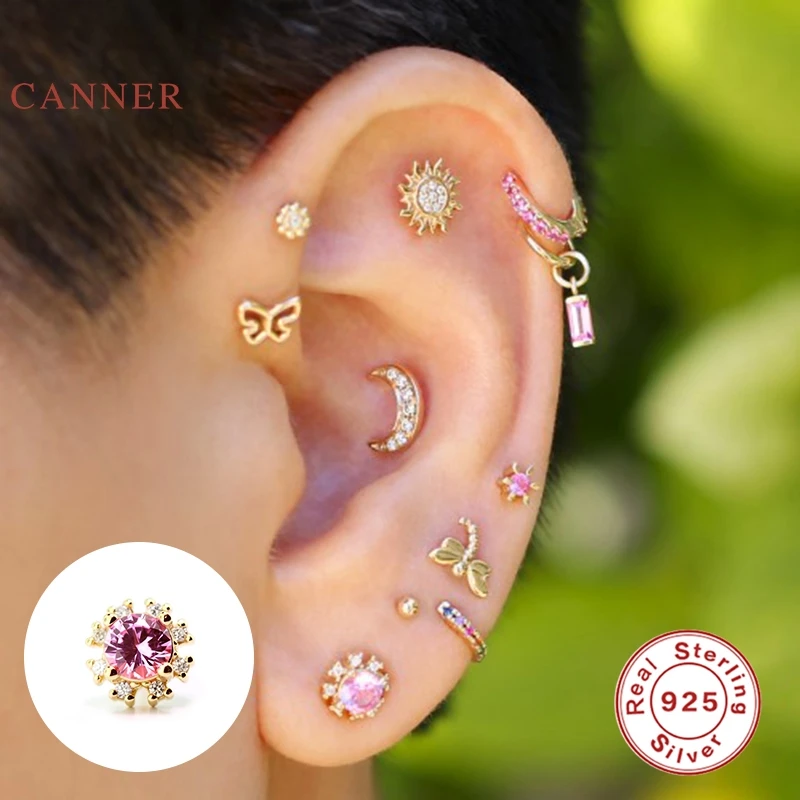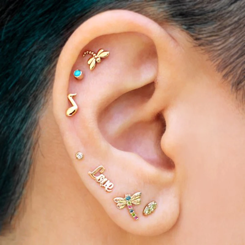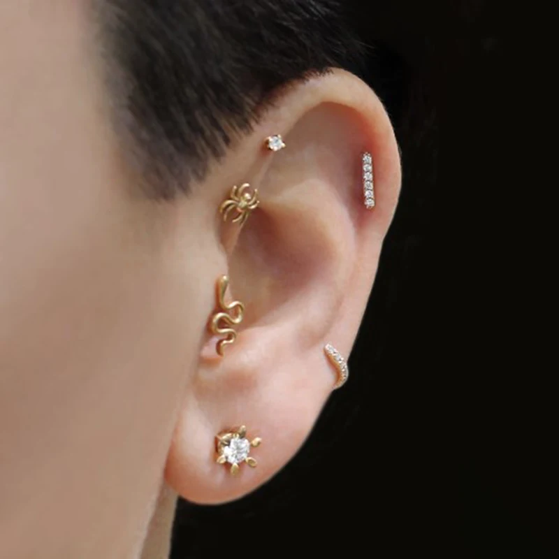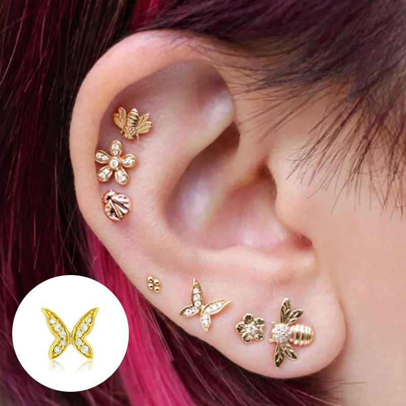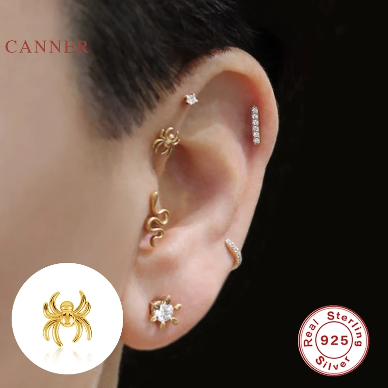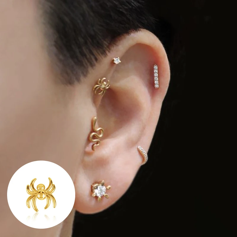 Женские серьги-гвоздики из серебра 925 пробы в виде паука и бабочки