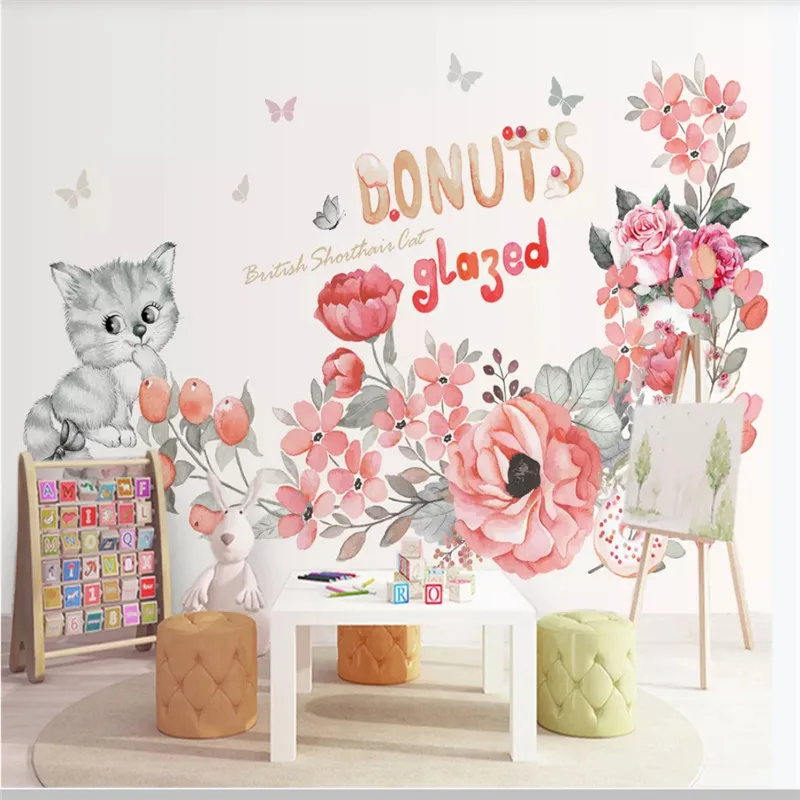 Современная детская комната фон настенная бумага 3D акварель мультфильм Кот цветок обои для детской комнаты Papel де Parede 3d