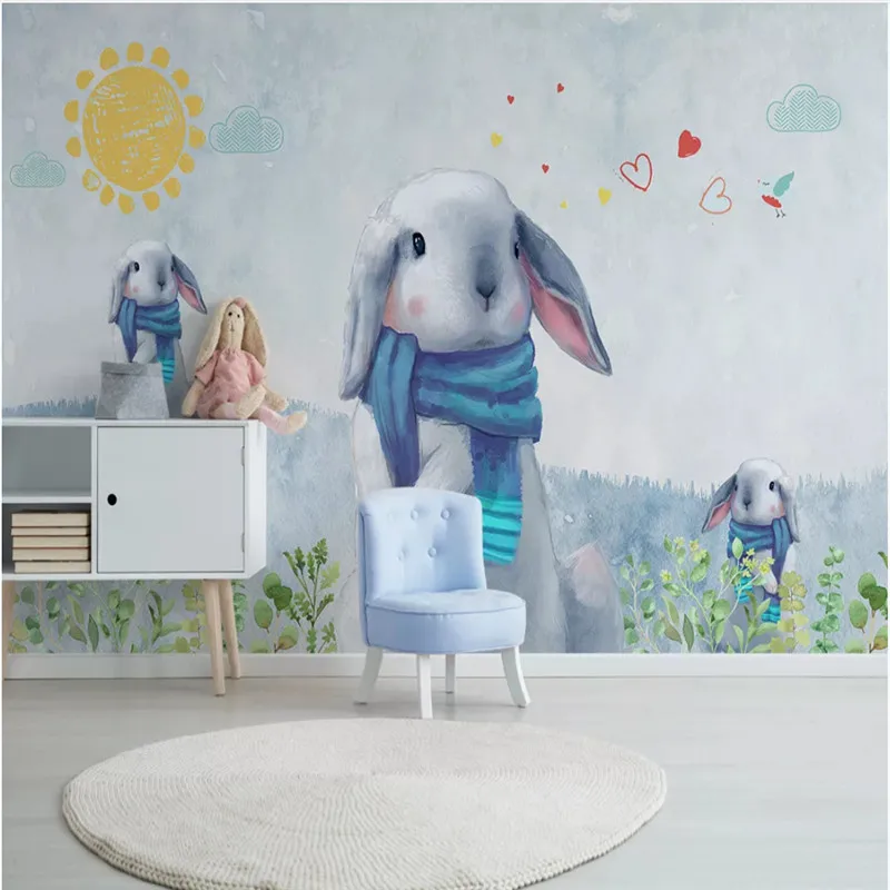 Скандинавский минималистичный фон для детской комнаты, настенная бумага 3D, ручная роспись, милые кролики, Декор, Настенные обои для детской комнаты, стены