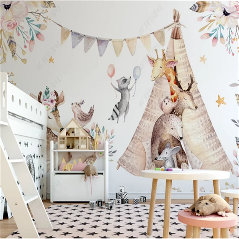 Нордический современный простой милый домашний декор с животными настенный бумажный фон для детской комнаты Настенные обои для детской комнаты 3d обои