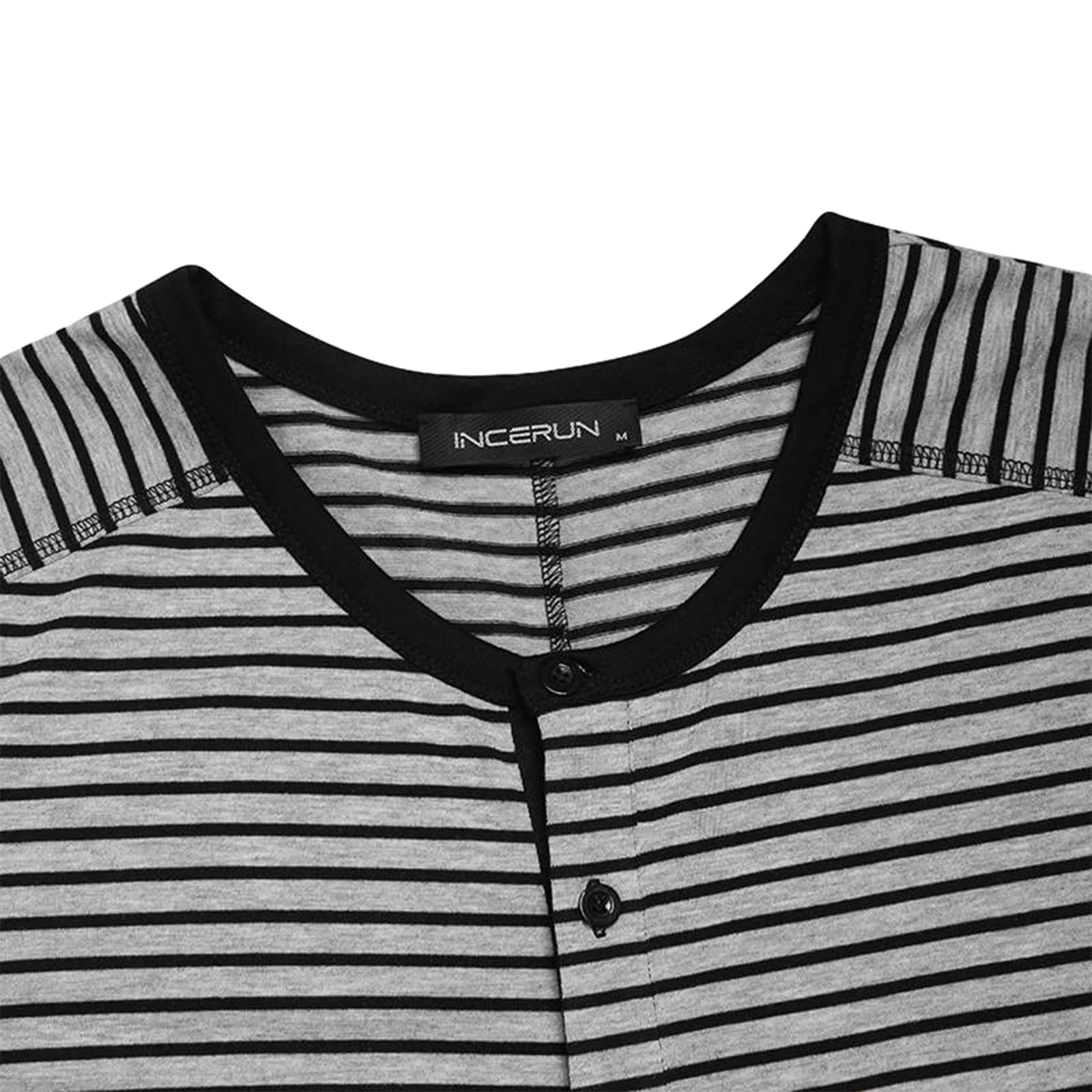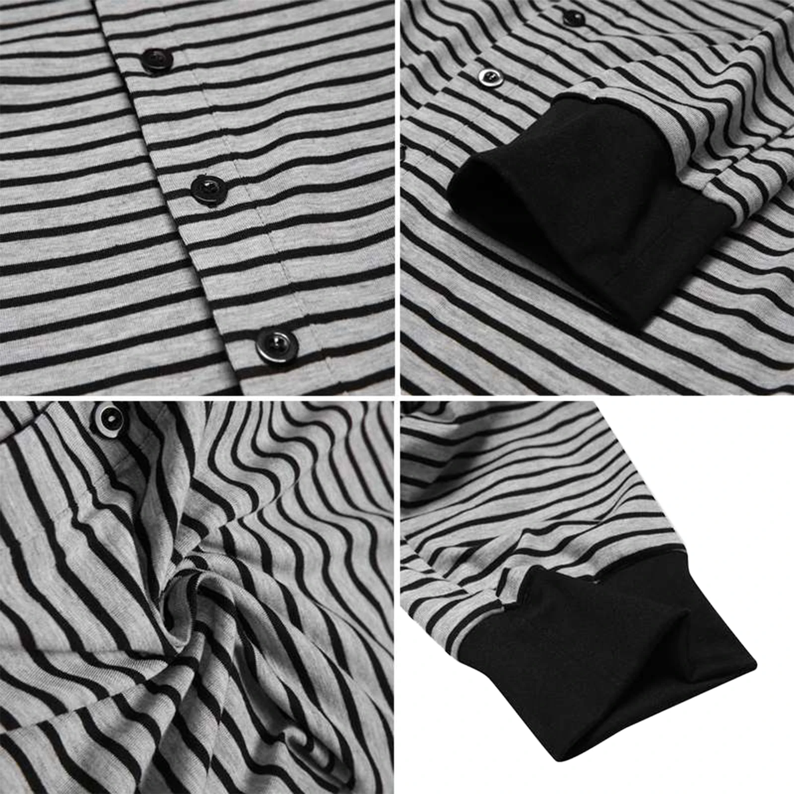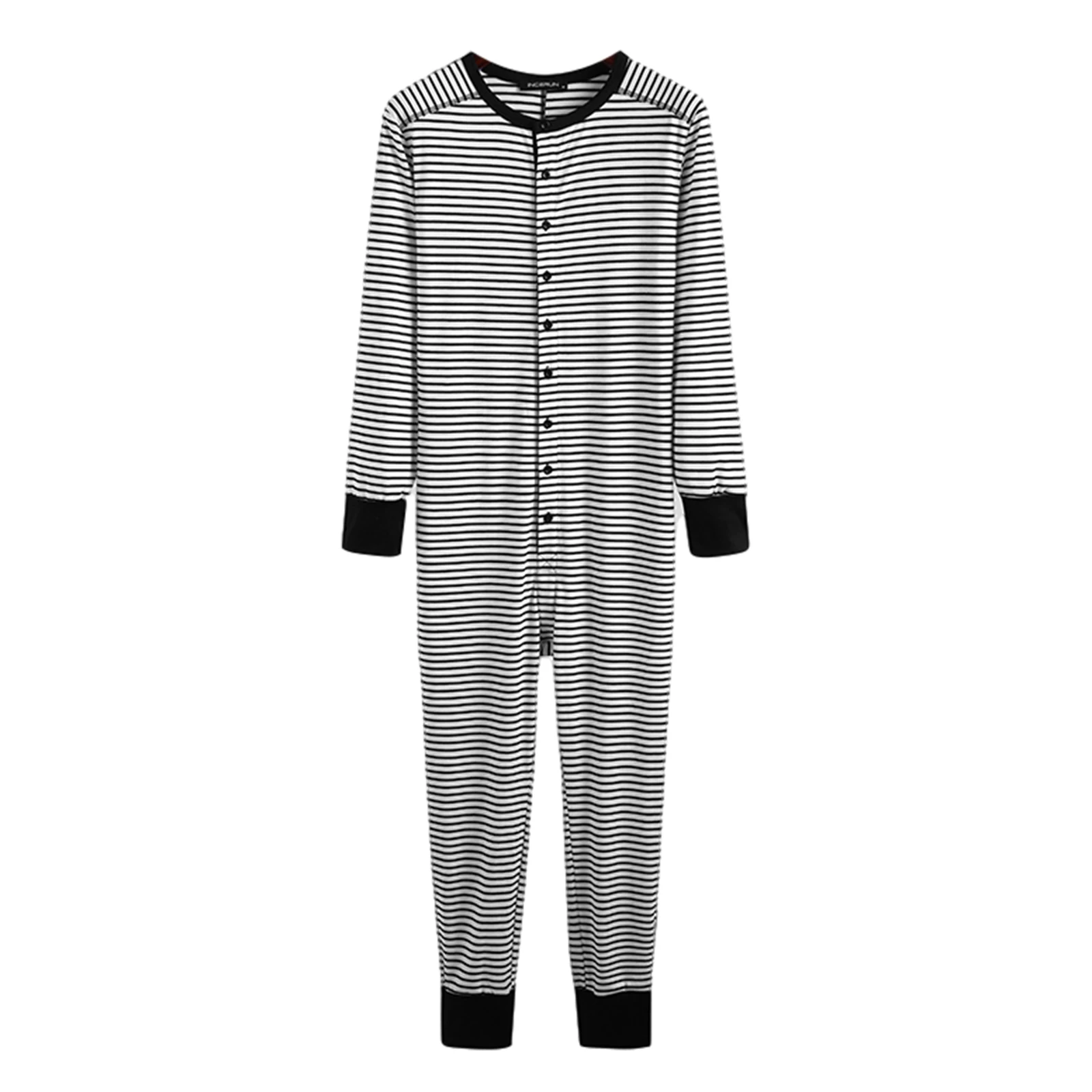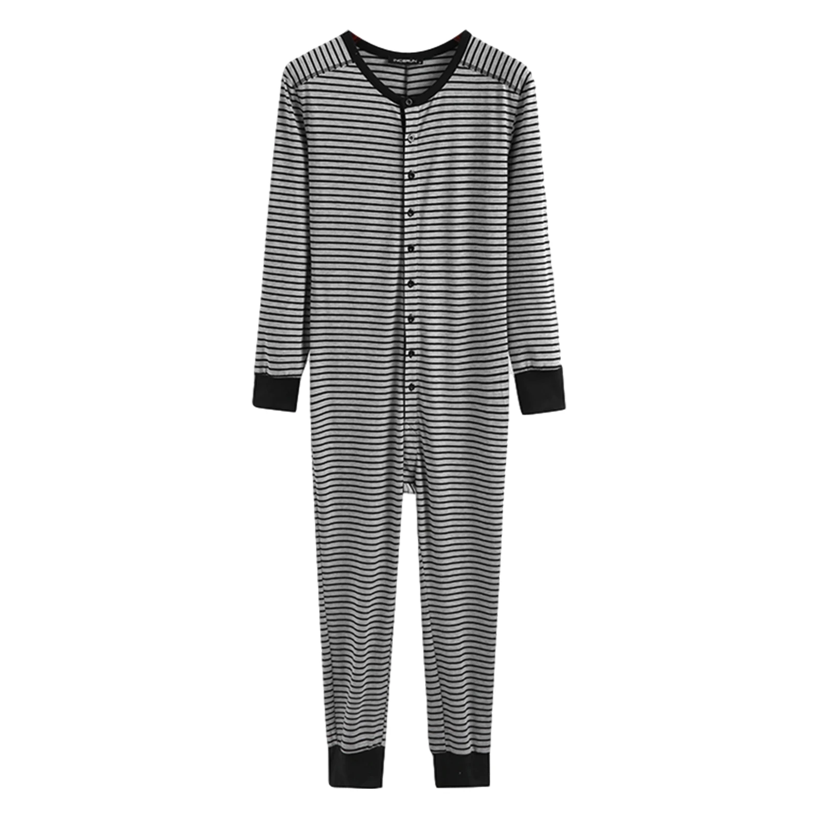 Мужская цельная Пижама, модный полосатый комбинезон с длинными рукавами и круглым вырезом на пуговицах, одежда для сна