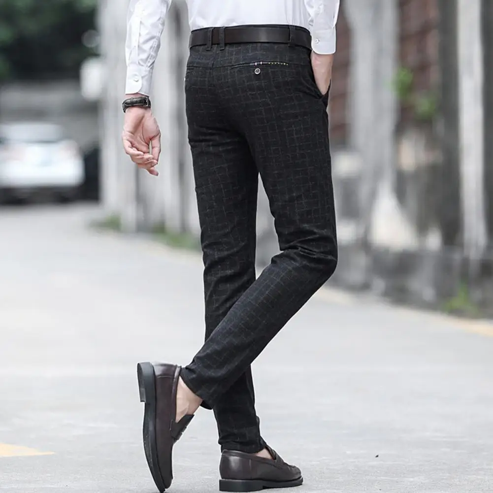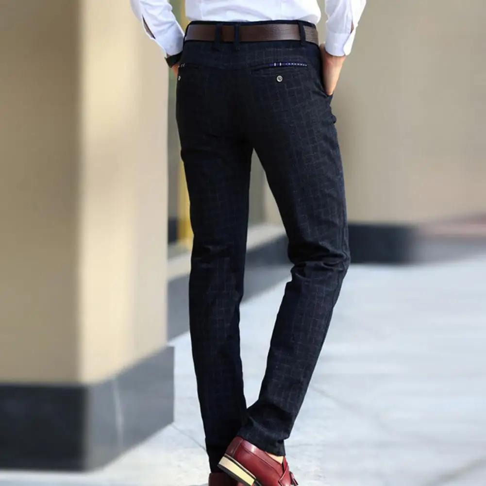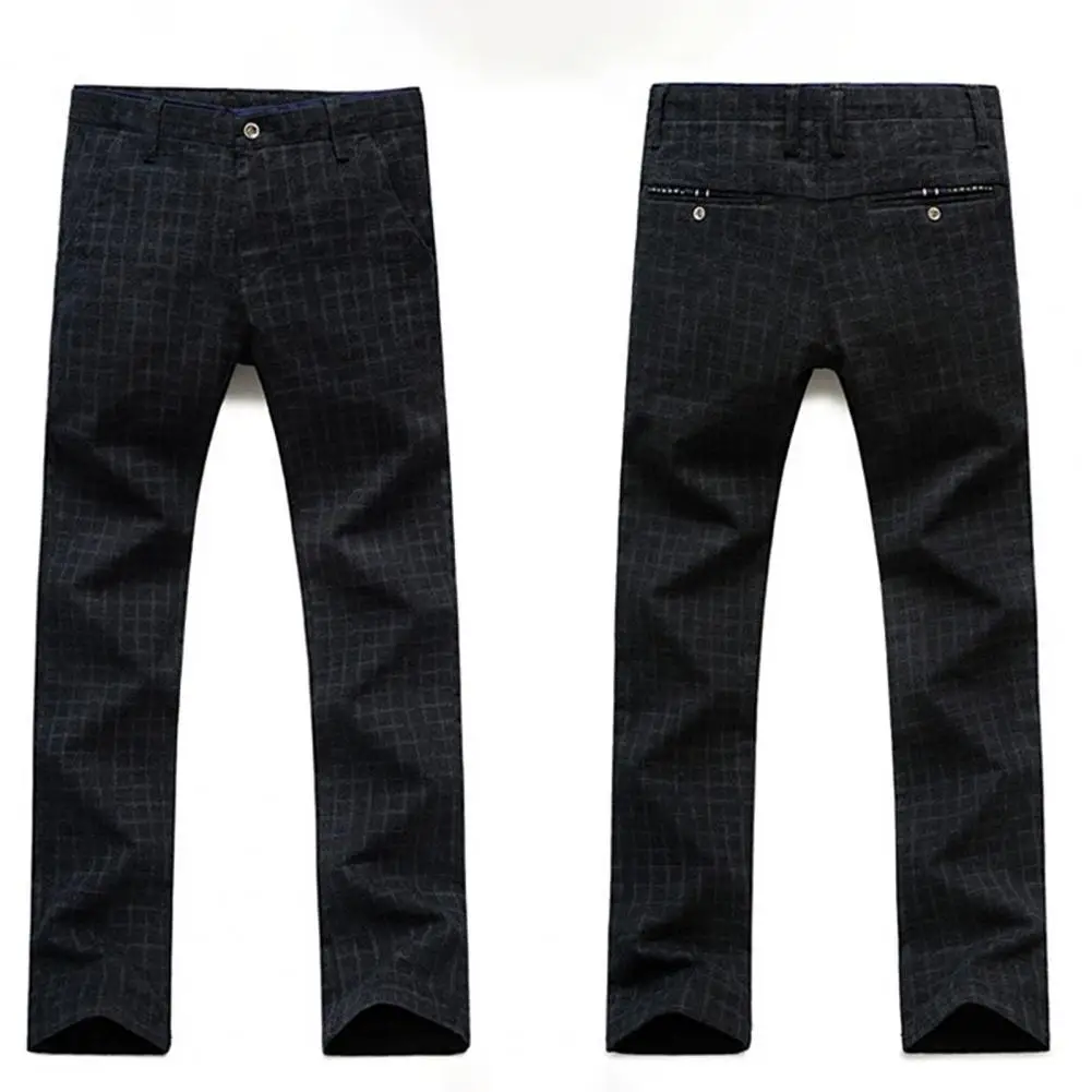 Мужские классические брюки, прямые брюки, осенне-зимние брюки в клетку, с карманами, для офиса
