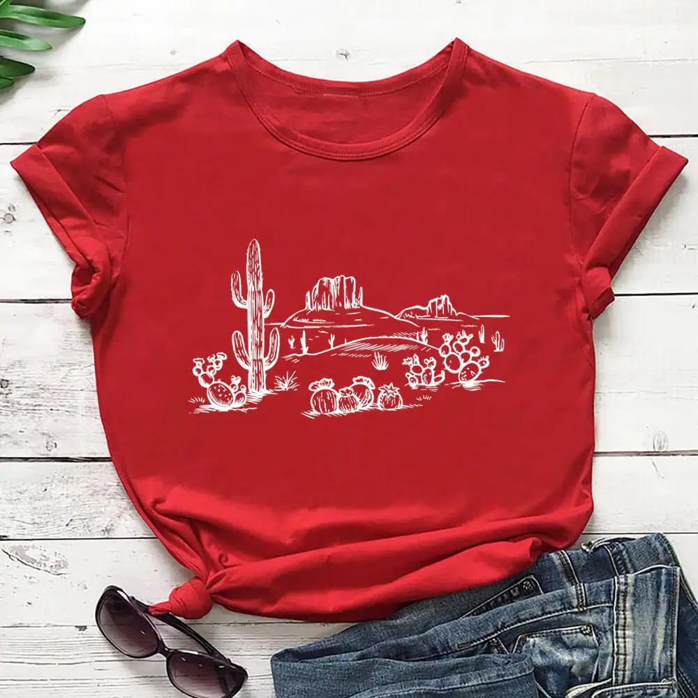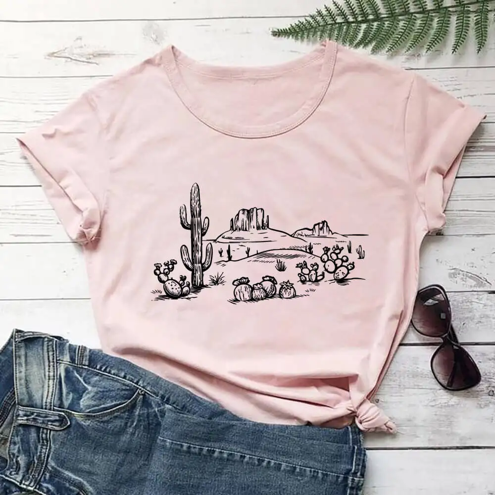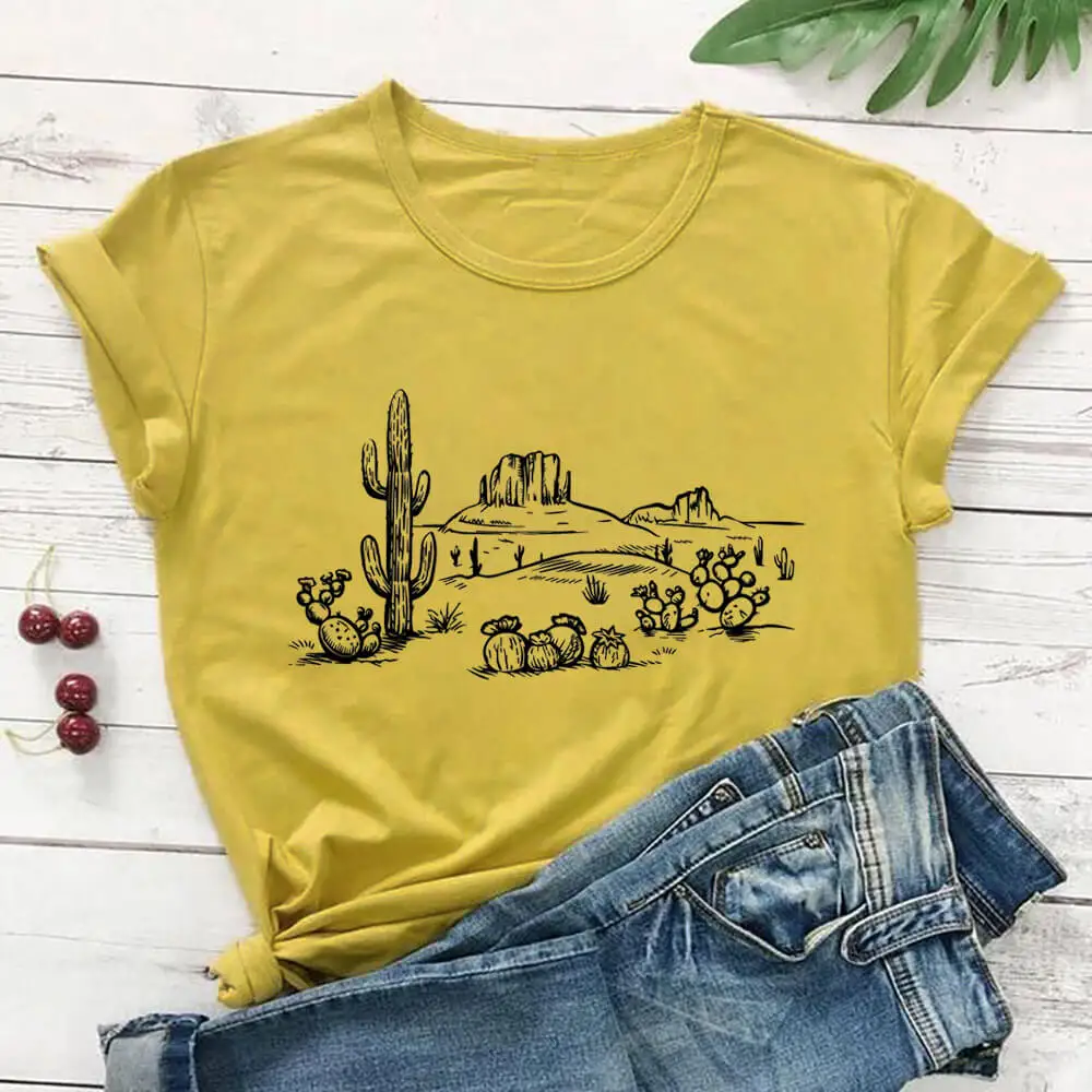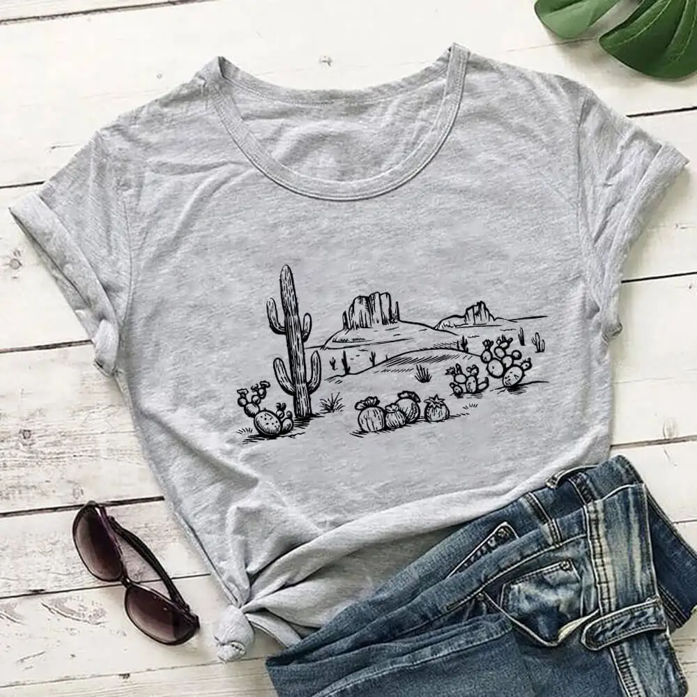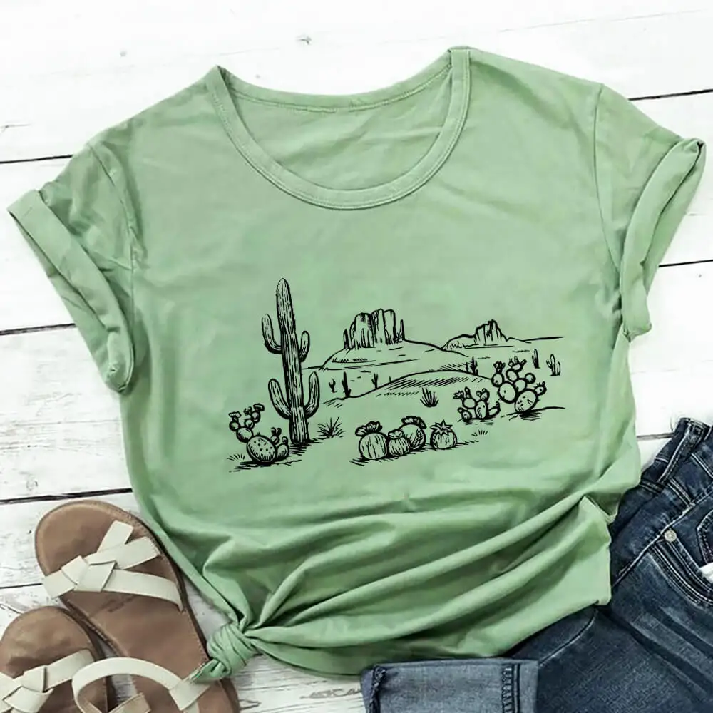 Пустыня Vibes кактус Графический напечатаны чистого шелка хлопчатобумажная Женская футболка унисекс Eco Life Повседневная летняя футболка исследовать футболка Приключения Топы