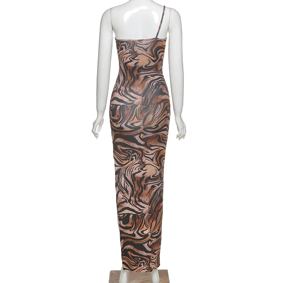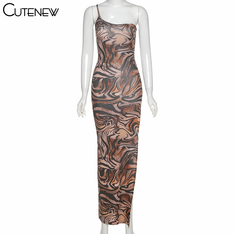 Cutenew в винтажном стиле, элегантное платье на одно плечо женское платье летнее платье без рукавов Тонкий Хай-стрит Изящные банкетные вечерние пикантные туфли на высоком Разделение платье