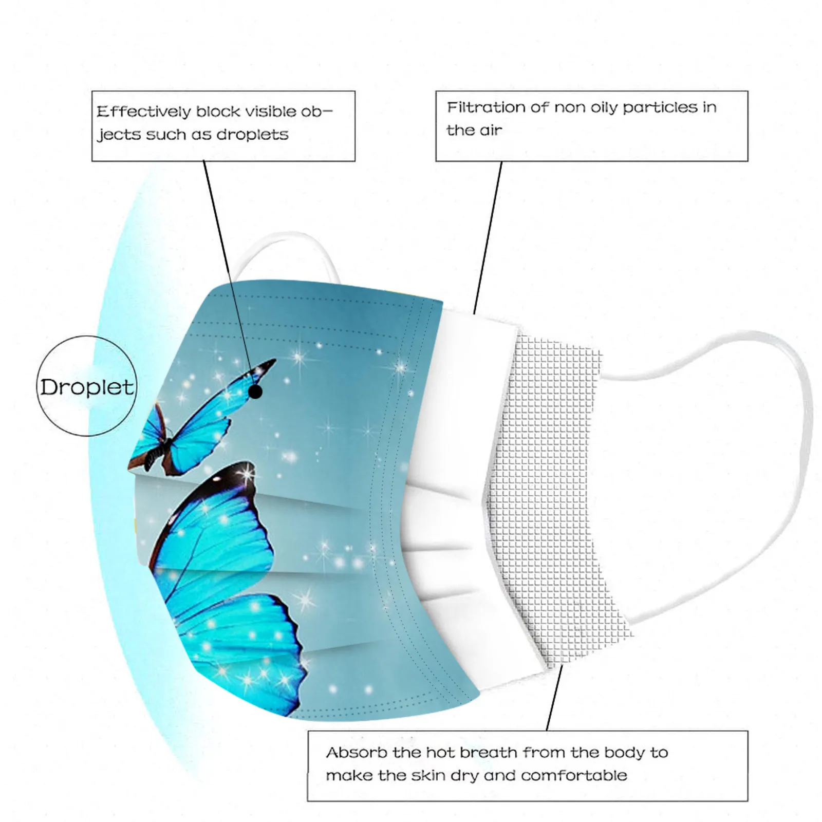 50 шт в наборе, для детей с принтом бабочка Маска для лица многоразовая 3ply петли уха рот маски Mascarillas мягкий Cubrebocas Маска Тканевая